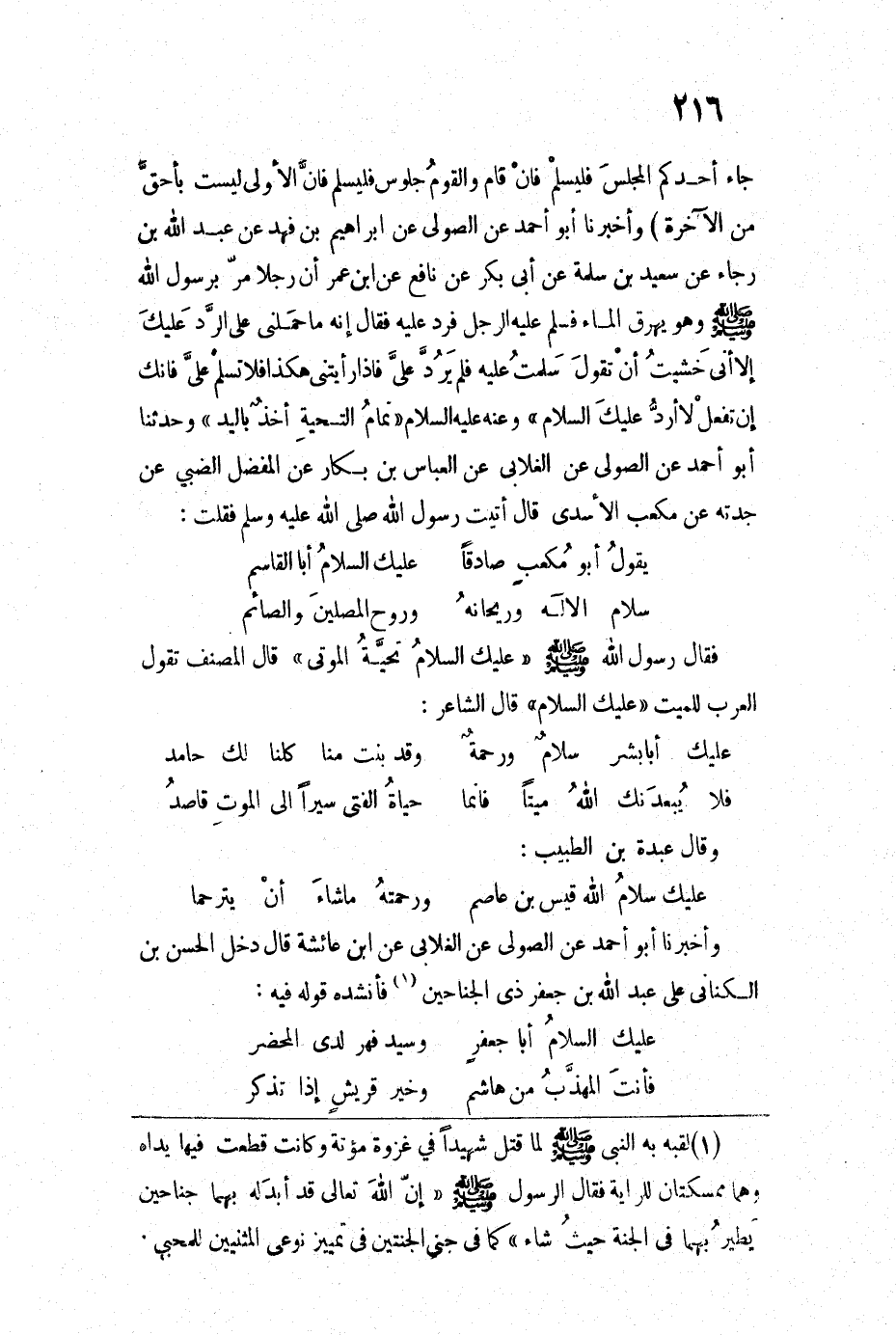 جاء أحدكم المجلس فليسلم فإن قام والقوم جلوس فليسلم فإن الأولى ليست بأحق من الآخرة) وأخبرنا أبو أحمد عن الصولي عن إبراهيم بن فهد عن عبد الله بن رجاء عن سعيد بن سلمة عن أبي بكر عن نافع عن ابن عمر أن رجلا مر برسول الله