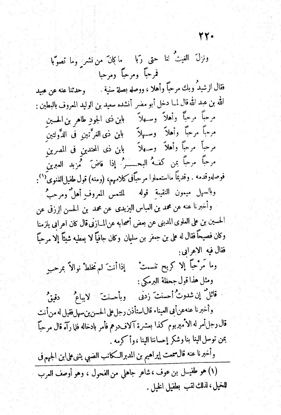 (مرحباً مرحباً وأهلاً وسهلاً ... بابن ذي الجودِ طاهرِ بن الحسينِ)