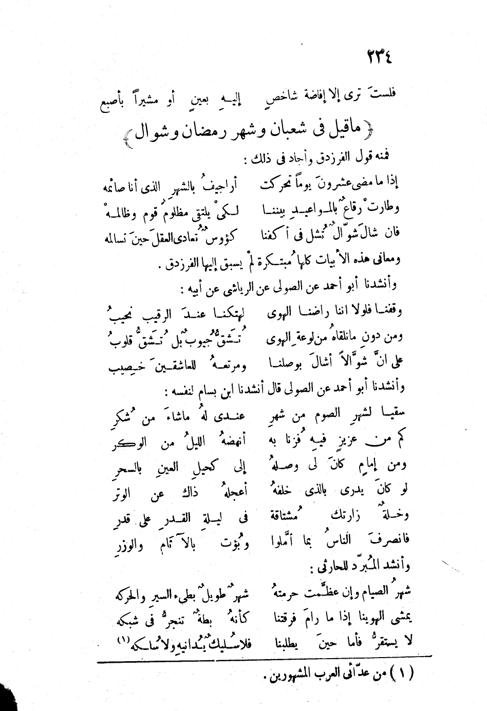 ومعاني هذه الأبيات كلها متبكرة لم يسبق إليها الفرزدق. وأنشدنا أبو أحمد عن الصولي عن الرياشي عن أبيه: