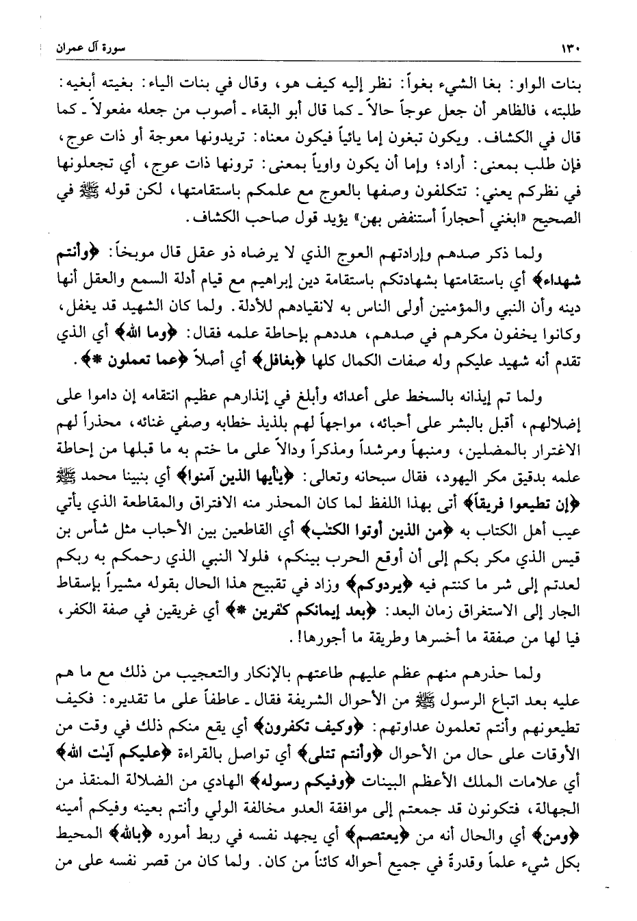 ويكون تبغون إما يائياً فيكون معناه : تريدونها معوجة أو ذات عوج ، فإن طلب بمعنى : أراد ؛ وإما أن يكون واوياً بمعنى : ترونها ذات عوج ، أي تجعلونها في نظركم يعني : تتكلفون وصفها بالعوج مع علمكم باستقامتها ، لكن قوله ( صلى الله عليه وسلم ) في الصحيح ( ابغني أحجاراً أستنفض بهن ) يؤيد قول صاحب الكشاف .