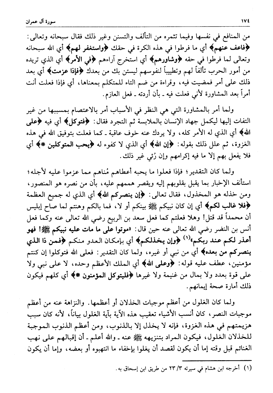 من المنافع في نفسها وفيما تثمره من التألف والتسنن وغير ذلك فقال سبحانه وتعالى : ( فاعف عنهم ) أي ما فرطوا في هذه الكره في حقك ) واستغفر لهم ) أي الله سبحانه وتعالى لما فرطوا في حقه ) وشاورهم ) أي استخرج آراءهم ) في الأمر ) أي الذي تريده من أمور الحرب تألفاً لهم وتطبيقاً لنفوسهم ليستن بك من بعدك ) فإذا عزمت ) أي بعد ذلك على أمر فمضيت فيه ، وقراءة من ضم التاء للمتكلم بمعناها ، أي فإذا فعلت أنت أمراً بعد المشاورة لأني فعلت فيه - بأن أردته - فعل العازم .