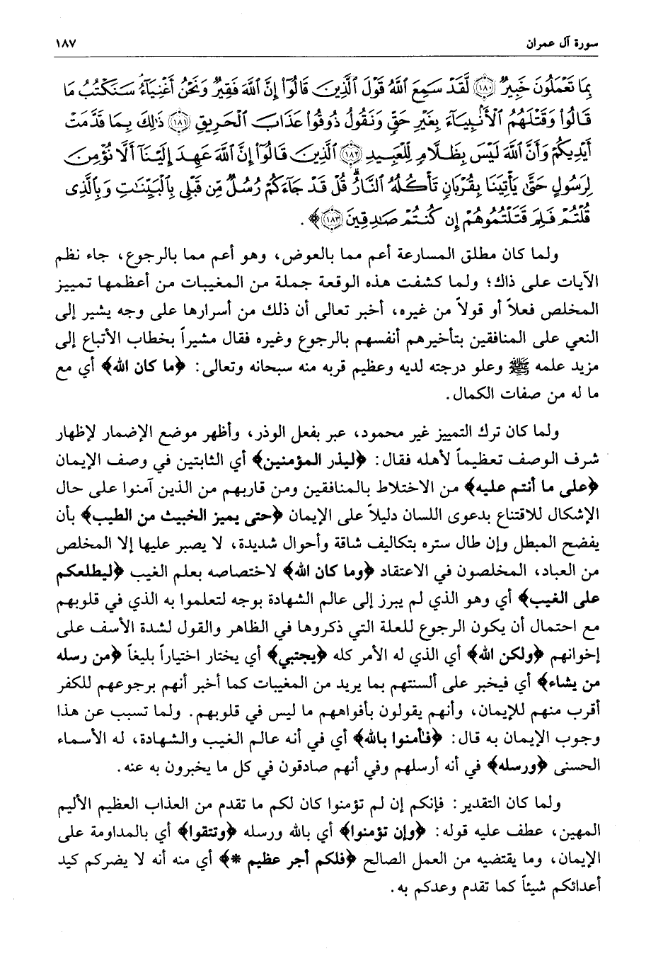 بِمَا تَعْمَلُونَ خَبِيرٌ لَّقَدْ سَمِعَ اللَّهُ قَوْلَ الَّذِينَ قَالُواْ إِنَّ اللَّهَ فَقِيرٌ وَنَحْنُ أَغْنِيَآءُ سَنَكْتُبُ مَا قَالُواْ وَقَتْلَهُمُ الأَنبِيَاءَ بِغَيْرِ حَقٍّ وَنَقُولُ ذُوقُواْ عَذَابَ الْحَرِيقِ ذلِكَ بِمَا قَدَّمَتْ أَيْدِيكُمْ وَأَنَّ اللَّهَ لَيْسَ بِظَلاَّمٍ لِّلْعَبِيدِ الَّذِينَ قَالُواْ إِنَّ اللَّهَ عَهِدَ إِلَيْنَا أَلاَّ نُؤْمِنَ لِرَسُولٍ حَتَّى يَأْتِيَنَا بِقُرْبَانٍ تَأْكُلُهُ النَّارُ قُلْ قَدْ جَآءَكُمْ رُسُلٌ مِّن قَبْلِي بِالْبَيِّنَاتِ وَبِالَّذِي قُلْتُمْ فَلِمَ قَتَلْتُمُوهُمْ إِن كُنتُمْ صَادِقِينَ ) 73