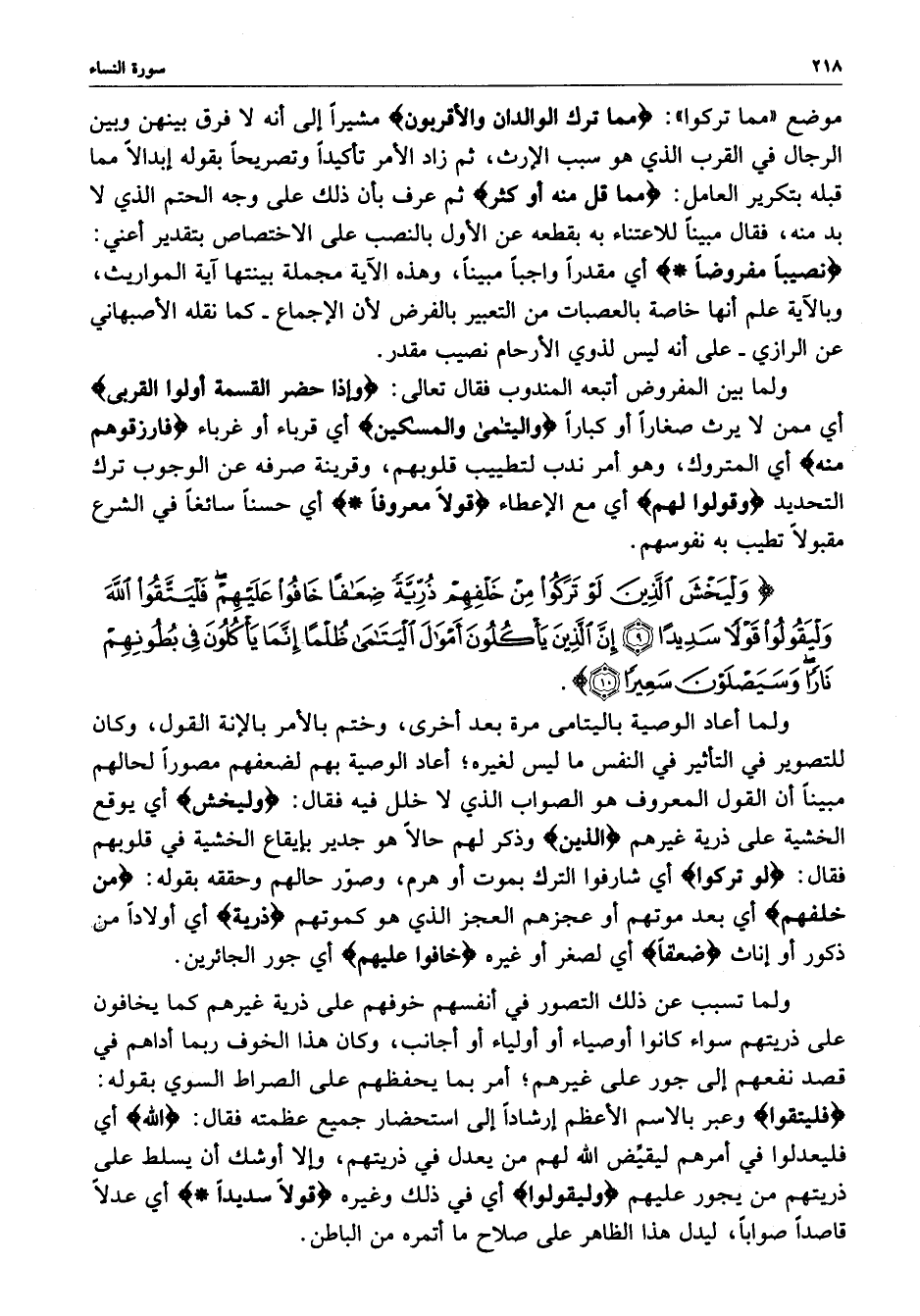 ) وَلْيَخْشَ الَّذِينَ لَوْ تَرَكُواْ مِنْ خَلْفِهِمْ ذُرِّيَّةً ضِعَافاً خَافُواْ عَلَيْهِمْ فَلْيَتَّقُواّ اللَّهَ وَلْيَقُولُواْ قَوْلاً سَدِيداً إِنَّ الَّذِينَ يَأْكُلُونَ أَمْوَالَ الْيَتَامَى ظُلْماً إِنَّمَا يَأْكُلُونَ فِي بُطُونِهِمْ نَاراً وَسَيَصْلَوْنَ سَعِيراً ( ( )
