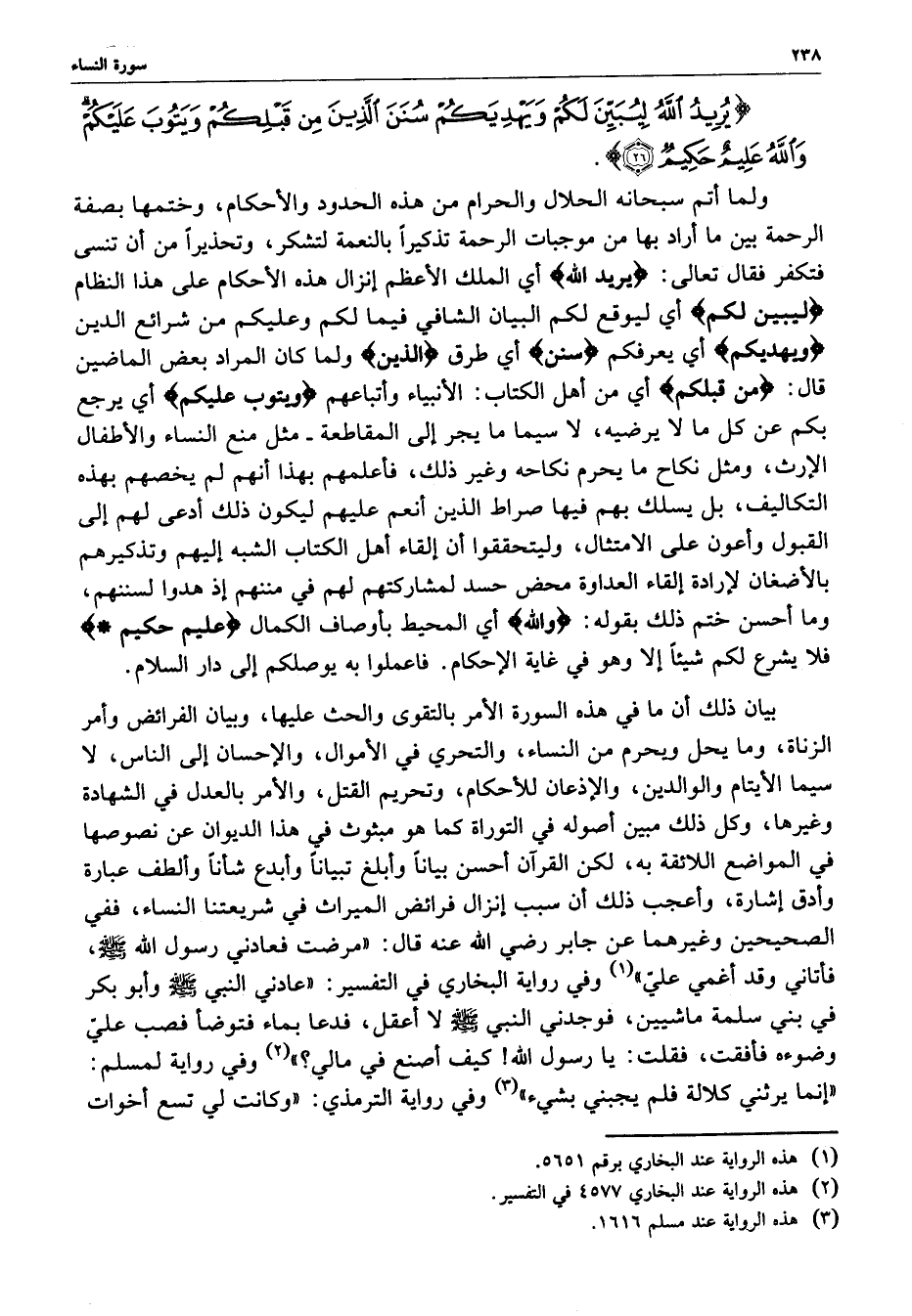 ) يُرِيدُ اللَّهُ لِيُبَيِّنَ لَكُمْ وَيَهْدِيَكُمْ سُنَنَ الَّذِينَ مِن قَبْلِكُمْ وَيَتُوبَ عَلَيْكُمْ وَاللَّهُ عَلِيمٌ حَكِيمٌ ( ( )