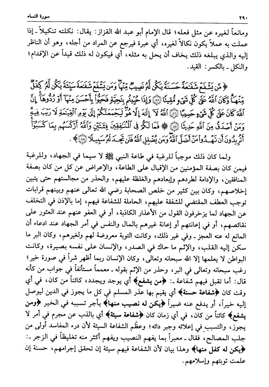 النساء : ( 85 - 88 ) من يشفع شفاعة. .. . .