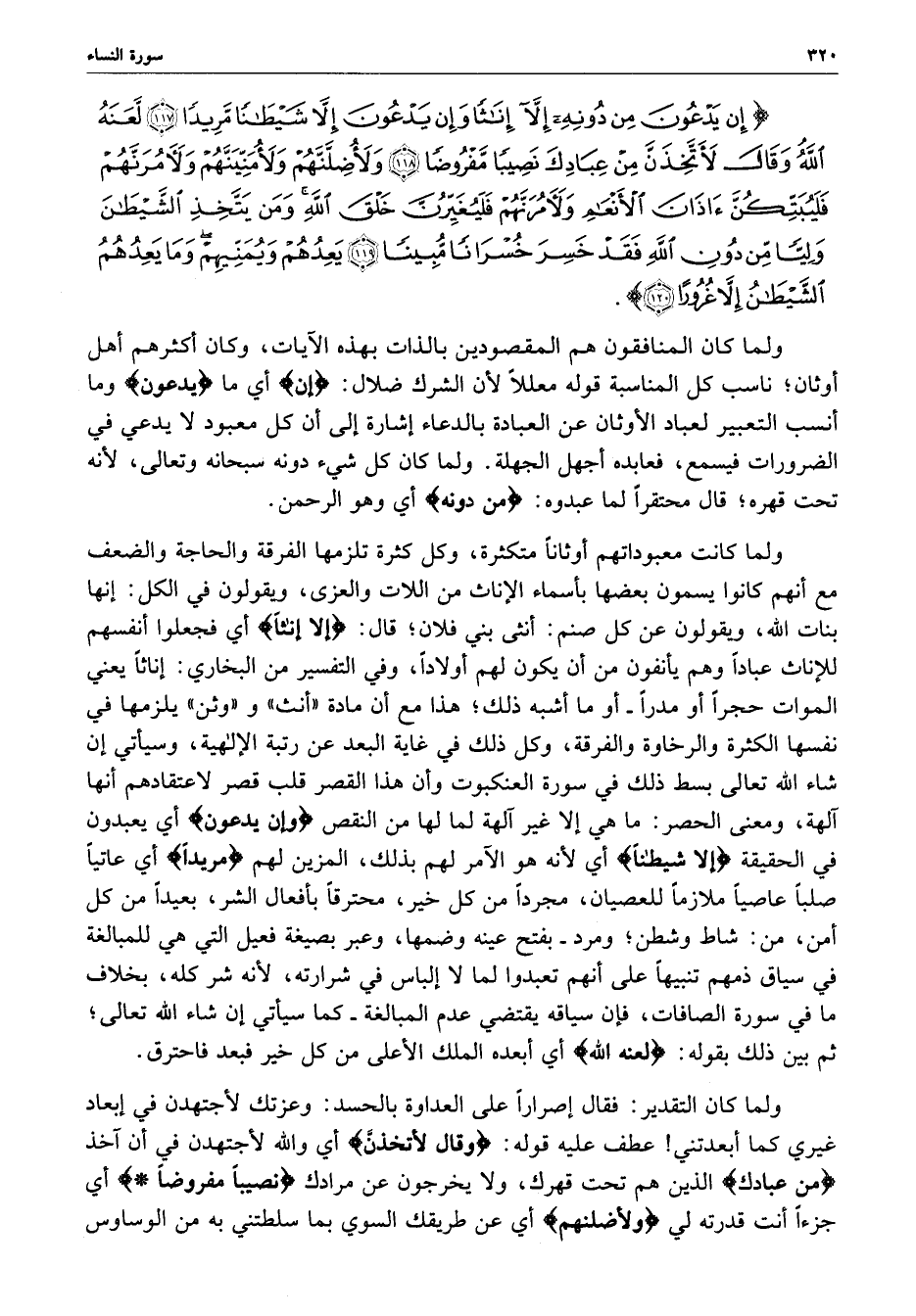 النساء : ( 117 - 120 ) إن يدعون من. .. . .