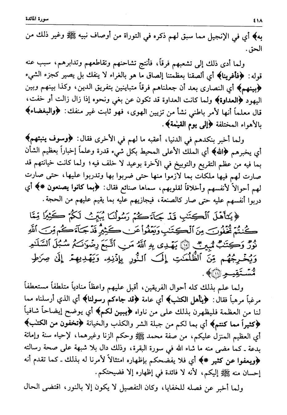 المائدة : ( 15 - 16 ) يا أهل الكتاب. .. . .