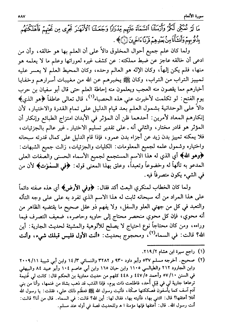 ولما كان الخطاب لمنكري البعث أكد فقال : ( وفي الأرض ) أي هذه صفته دائماً على هذا المراد من أنه سبحانه ثابت له هذا الاسم الذي تفرد به على وجه التأله والتعبد في كل من جهتي العلو والسفل ، ولا يفهم ذو عقل صحيح ما يقتضيه الظاهر من أنه محوي ، فإن كل محوي منحصر محتاج إلى حاويه وحاصره ، ضعيف التصرف فيما وراءه ، ومن كان محتاجاً نوع احتياج لا يصلح للألوهية والمشيئة لحديث الجارية : أين الله ؟ قالت : في السماء ، ومحجوج بحديث : ( أنت الأول فليس قبلك شيء ، وأنت