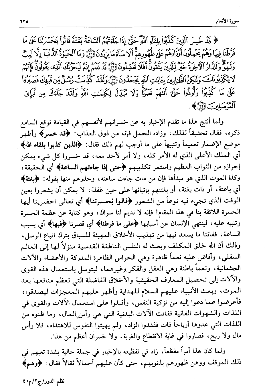 الأنعام : ( 31 - 34 ) قد خسر الذين. .. . .