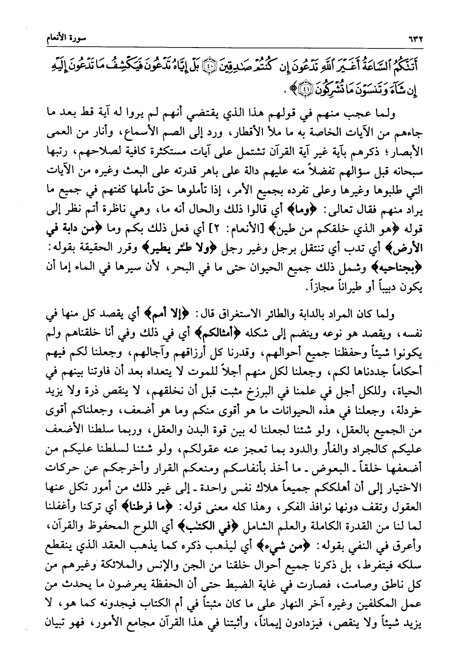 السَّاعَةُ أَغَيْرَ اللَّهِ تَدْعُونَ إِن كُنتُمْ صَادِقِينَ بَلْ إِيَّاهُ تَدْعُونَ فَيَكْشِفُ مَا تَدْعُونَ إِلَيْهِ إِنْ شَآءَ وَتَنسَوْنَ مَا تُشْرِكُونَ ) 73