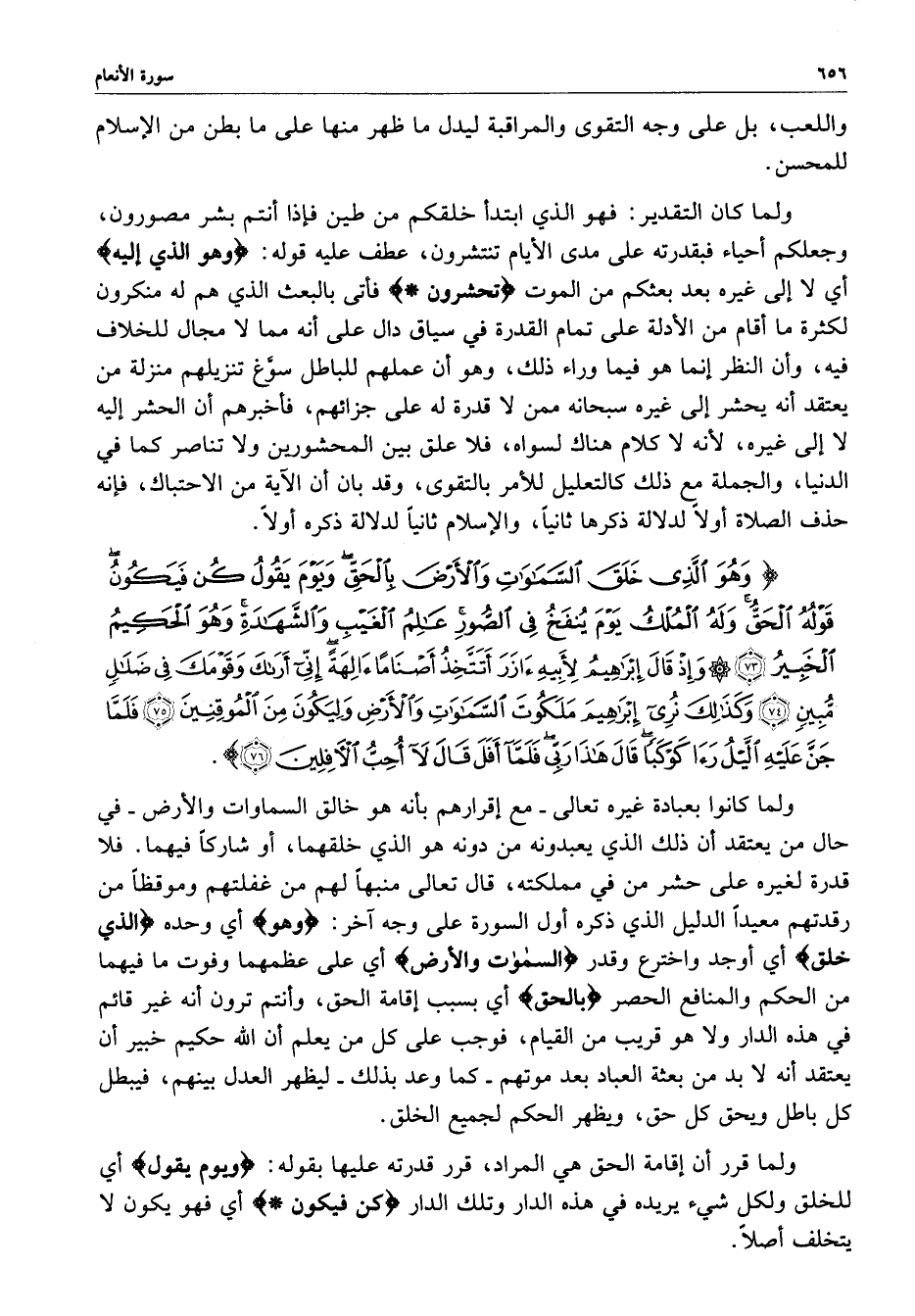 الأنعام : ( 73 - 76 ) وهو الذي خلق. .. . .