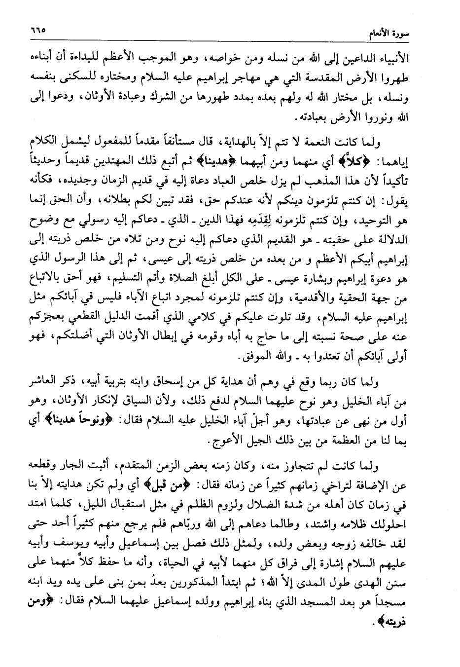 ولما كانت النعمة لا تم إلاّ بالهداية ، قال مستانفاً مقدماً للمفعول ليشمل الكلام إياهما : ( كلاًّ ) أي منهما ومن أبيهما ) هدينا ( ثم أتبع ذلك المهتدين قديماً وحديثاً تأكيداً لأن هذا المذهب لم يزل خلص العباد دعاة إليه في قديم الزمان وجديده ، فكأنه يقول : إن كنتم تلزمون دينكم لأنه عندكم حق ، فقد تبين لكم بطلانه ، وأن الحق إنما هو التوحيد ، وإن كنتم تلزمونه لِقِدَمِه فهذا الدين - الذي - دعاكم إليه رسولي مع وضوح الدلالة على حقيته - هو القديم الذي دعاكم إليه نوح ومن تلاه من خلص ذريته إلى إبراهيم أبيكم الأعظم ومن بعده من خلص ذريته إلى عيسى ، ثم إلى هذا الرسول الذي هو دعوة إبراهيم وبشارة عيسى - على الكل أبلغ الصلاة وأتم التسليم ، فهو أحق بالاتباع من جهة الحقية والأقدمية ، وإن كنتم تلزمونه لمجرد اتباع الآباء فليس في أبائكم مثل إبراهيم عليه السلام ، وقد تلوت عليكم في كلامي الذي أقمت الدليل القطعي بعجزكم عنه على صحة نسبته إلى ما حاج به أباه وقومه في إبطال الأوثان التي أضلتكم ، فهو أولى ىبائكم أن تعتدوا به - والله الموفق .