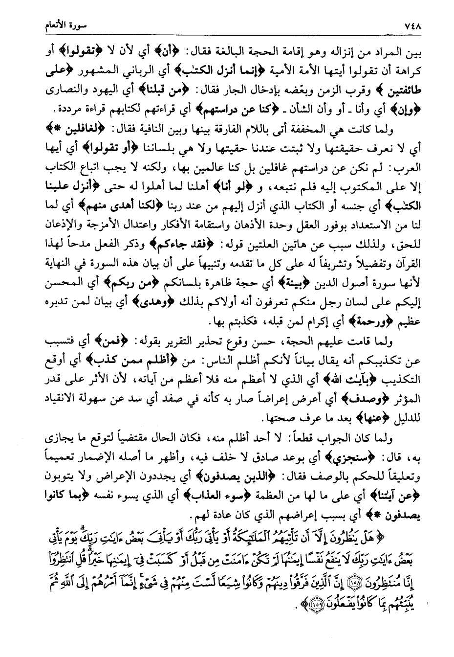 الأنعام : ( 158 - 159 ) هل ينظرون إلا. .. . .