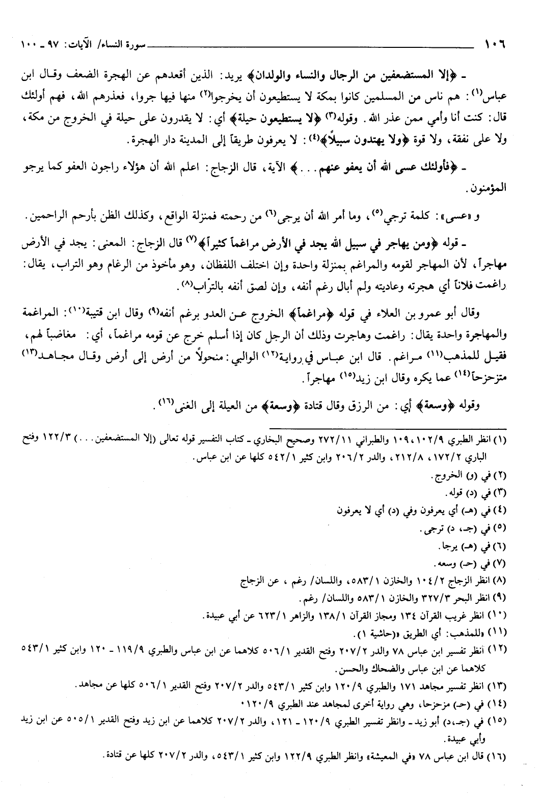 إِلا الْمُسْتَضْعَفِينَ مِنَ الرِّجَالِ وَالنِّسَاءِ وَالْوِلْدَانِ} [النساء: 98] يريد: الذين أقعدهم عن الهجرة الضعف، وقال ابن عباس: هم ناس من المسلمين كانوا بمكة لا يستطيعون أن يخرجوا منها فيهاجروا، فعذرهم الله، فهم أولئك.
