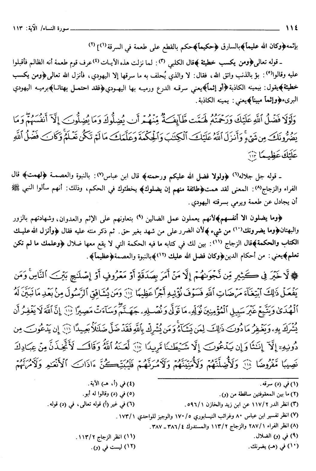 {طَائِفَةٌ مِنْهُمْ أَنْ يُضِلُّوكَ} [النساء: 113] يخطئوك في الحكم، وذلك: أنهم سألوا النبي صَلَّى اللهُ عَلَيْهِ وَسَلَّمَ أن يجادل عن طعمة ويرمي بسرقته اليهودي.