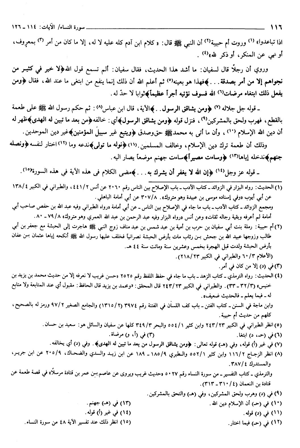 قوله جل جلاله: {وَمَنْ يُشَاقِقِ الرَّسُولَ} [النساء: 115] الآية، قال ابن عباس: ثم حكم رسول الله صَلَّى اللهُ عَلَيْهِ وَسَلَّمَ على طعمة بالقطع، فهرب ولحق بالمشركين، فنزل قوله: {وَمَنْ يُشَاقِقِ الرَّسُولَ} [النساء: 115] أي: خالفه، {مِنْ بَعْدِ مَا تَبَيَّنَ لَهُ الْهُدَى} [النساء: 115] ظهر له أن دين الله الإسلام، وأن ما أتى به محمد صَلَّى اللهُ عَلَيْهِ وَسَلَّمَ حق وصدق، {وَيَتَّبِعْ غَيْرَ سَبِيلِ الْمُؤْمِنِينَ} [النساء: 115] غير دين الموحدين.