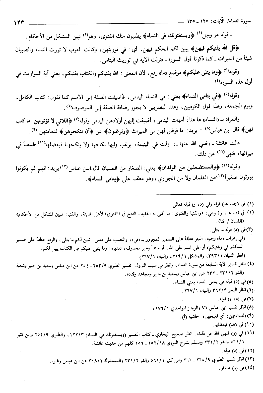 {قُلِ اللَّهُ يُفْتِيكُمْ فِيهِنَّ} [النساء: 127] يبين لكم الحكم فيهن، أي: في توريثهن، وكانت العرب لا تورث النساء والصبيان شيئا من الميراث، كما ذكرنا أول ال { [، فنزلت ال: في توريث اليتامى.