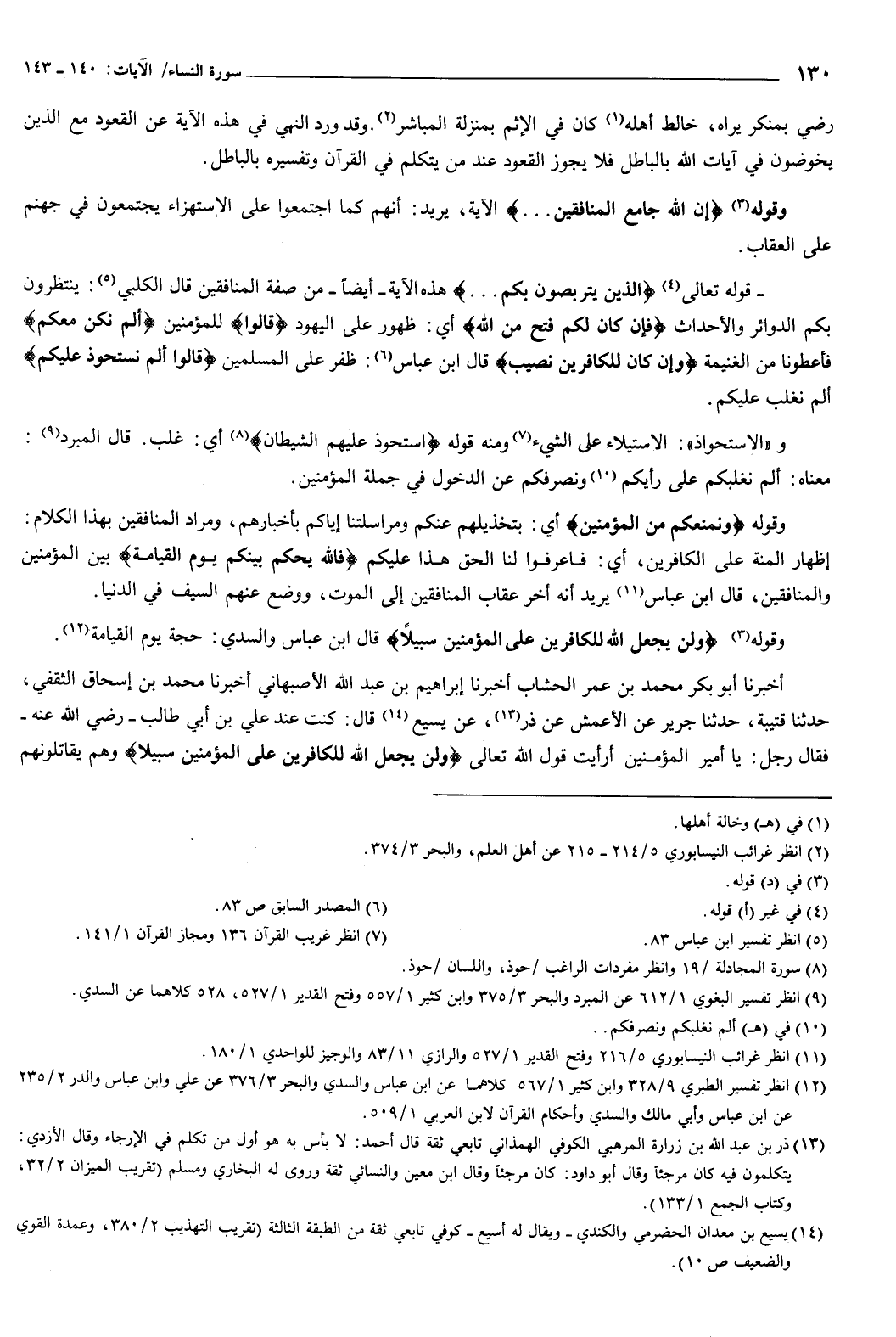 وقوله: {وَلَنْ يَجْعَلَ اللَّهُ لِلْكَافِرِينَ عَلَى الْمُؤْمِنِينَ سَبِيلا} [النساء: 141] قال ابن عباس، والسدي: حجة يوم القيامة.