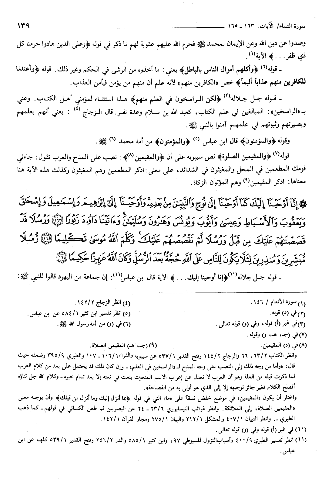 {إِنَّا أَوْحَيْنَا إِلَيْكَ كَمَا أَوْحَيْنَا إِلَى نُوحٍ وَالنَّبِيِّينَ مِنْ بَعْدِهِ وَأَوْحَيْنَا إِلَى إِبْرَاهِيمَ وَإِسْمَاعِيلَ وَإِسْحَاقَ وَيَعْقُوبَ وَالأَسْبَاطِ وَعِيسَى وَأَيُّوبَ وَيُونُسَ وَهَارُونَ وَسُلَيْمَانَ وَآتَيْنَا دَاوُدَ زَبُورًا {163} وَرُسُلا قَدْ قَصَصْنَاهُمْ عَلَيْكَ مِنْ قَبْلُ وَرُسُلا لَمْ نَقْصُصْهُمْ عَلَيْكَ وَكَلَّمَ اللَّهُ مُوسَى تَكْلِيمًا {164} رُسُلا مُبَشِّرِينَ وَمُنْذِرِينَ لِئَلَّا يَكُونَ لِلنَّاسِ عَلَى اللَّهِ حُجَّةٌ بَعْدَ الرُّسُلِ وَكَانَ اللَّهُ عَزِيزًا حَكِيمًا {165} } [النساء: 163-165] قوله جل جلاله: {إِنَّا أَوْحَيْنَا إِلَيْكَ} [النساء: 163] الآية: قال ابن عباس: إن جماعة من اليهود قالوا للنبي صَلَّى اللهُ عَلَيْهِ وَسَلَّمَ: