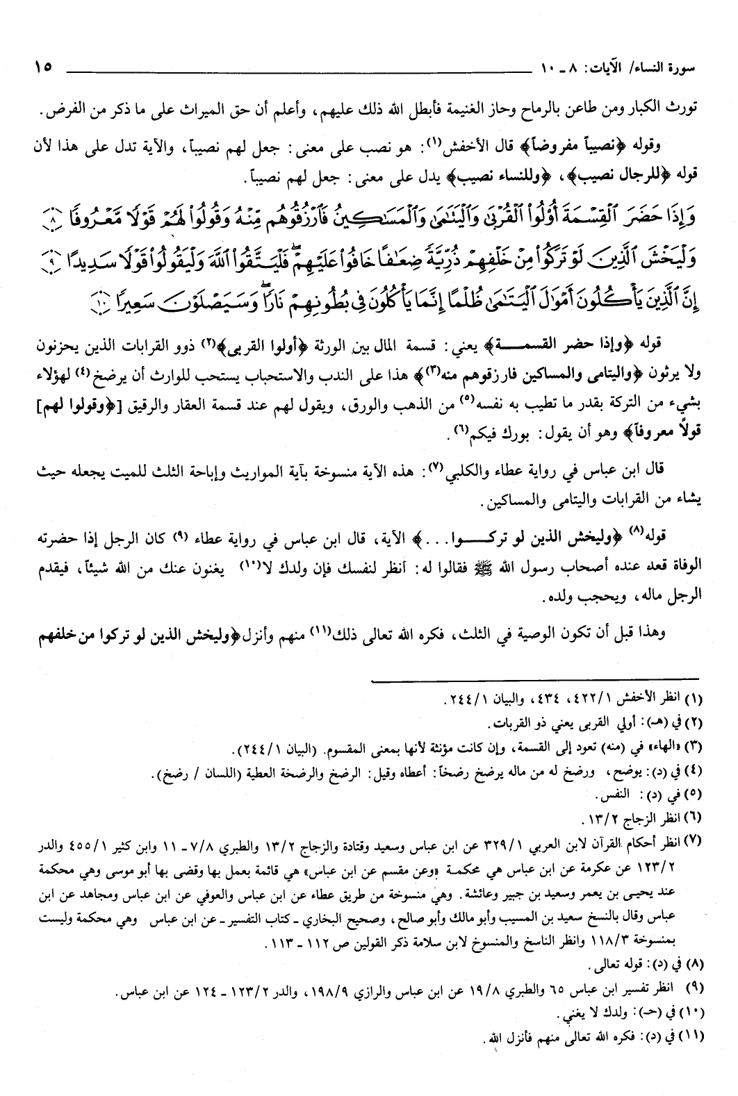 {وَإِذَا حَضَرَ الْقِسْمَةَ أُولُو الْقُرْبَى وَالْيَتَامَى وَالْمَسَاكِينُ فَارْزُقُوهُمْ مِنْهُ وَقُولُوا لَهُمْ قَوْلا مَعْرُوفًا {8} وَلْيَخْشَ الَّذِينَ لَوْ تَرَكُوا مِنْ خَلْفِهِمْ