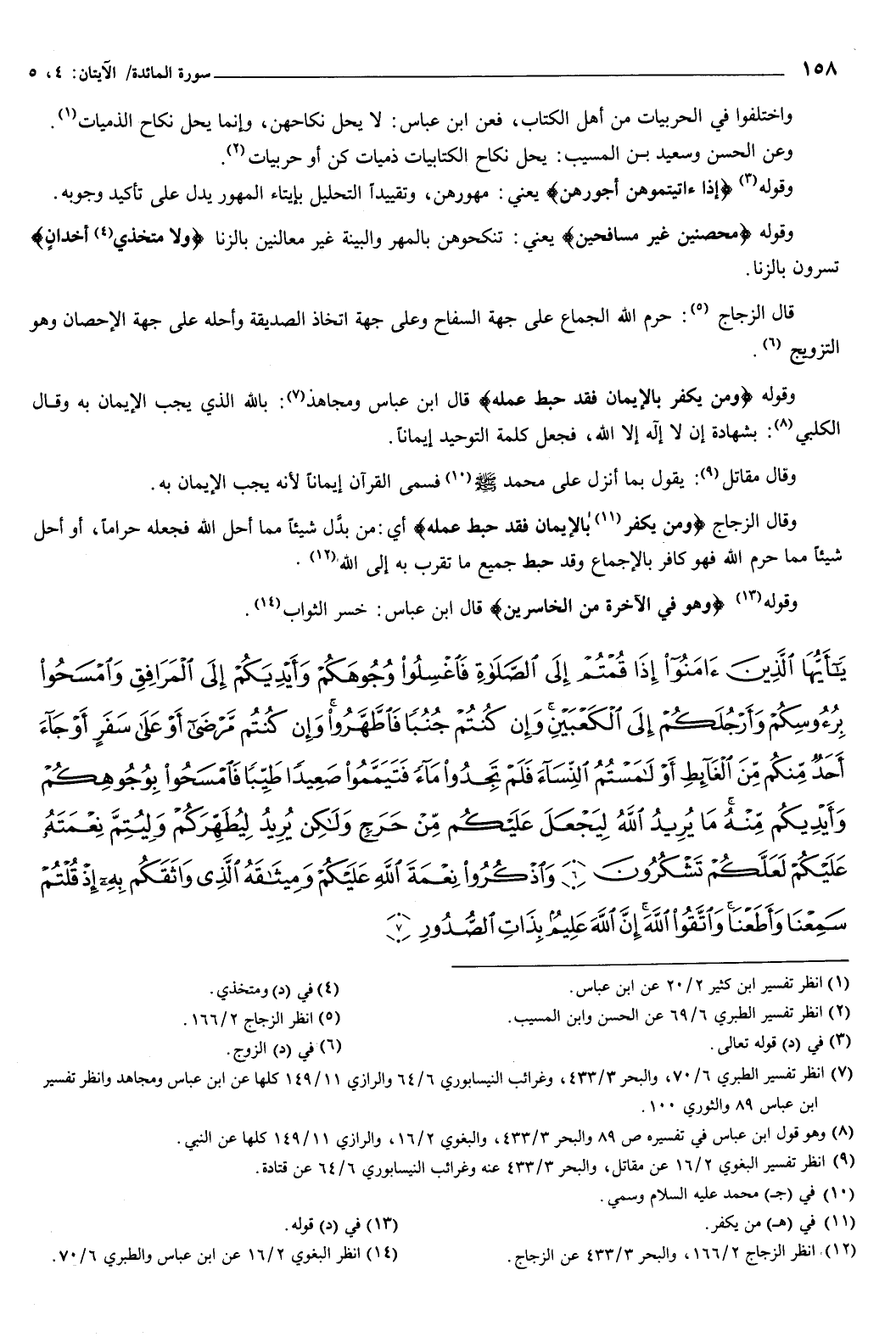 {يَأَيُّهَا الَّذِينَ آمَنُوا إِذَا قُمْتُمْ إِلَى الصَّلاةِ فَاغْسِلُوا وُجُوهَكُمْ وَأَيْدِيَكُمْ إِلَى الْمَرَافِقِ وَامْسَحُوا بِرُءُوسِكُمْ وَأَرْجُلَكُمْ إِلَى الْكَعْبَيْنِ وَإِنْ كُنْتُمْ جُنُبًا فَاطَّهَّرُوا وَإِنْ كُنْتُمْ مَرْضَى أَوْ عَلَى سَفَرٍ أَوْ جَاءَ أَحَدٌ مِنْكُمْ مِنَ الْغَائِطِ أَوْ لامَسْتُمُ النِّسَاءَ فَلَمْ تَجِدُوا مَاءً فَتَيَمَّمُوا صَعِيدًا طَيِّبًا فَامْسَحُوا بِوُجُوهِكُمْ وَأَيْدِيكُمْ مِنْهُ مَا يُرِيدُ اللَّهُ لِيَجْعَلَ عَلَيْكُمْ مِنْ حَرَجٍ وَلَكِنْ يُرِيدُ لِيُطَهِّرَكُمْ وَلِيُتِمَّ نِعْمَتَهُ عَلَيْكُمْ لَعَلَّكُمْ تَشْكُرُونَ {6} وَاذْكُرُوا نِعْمَةَ اللَّهِ عَلَيْكُمْ وَمِيثَاقَهُ الَّذِي وَاثَقَكُمْ بِهِ إِذْ قُلْتُمْ سَمِعْنَا وَأَطَعْنَا وَاتَّقُوا اللَّهَ إِنَّ اللَّهَ عَلِيمٌ بِذَاتِ الصُّدُورِ {7} } [المائدة: 6-7]