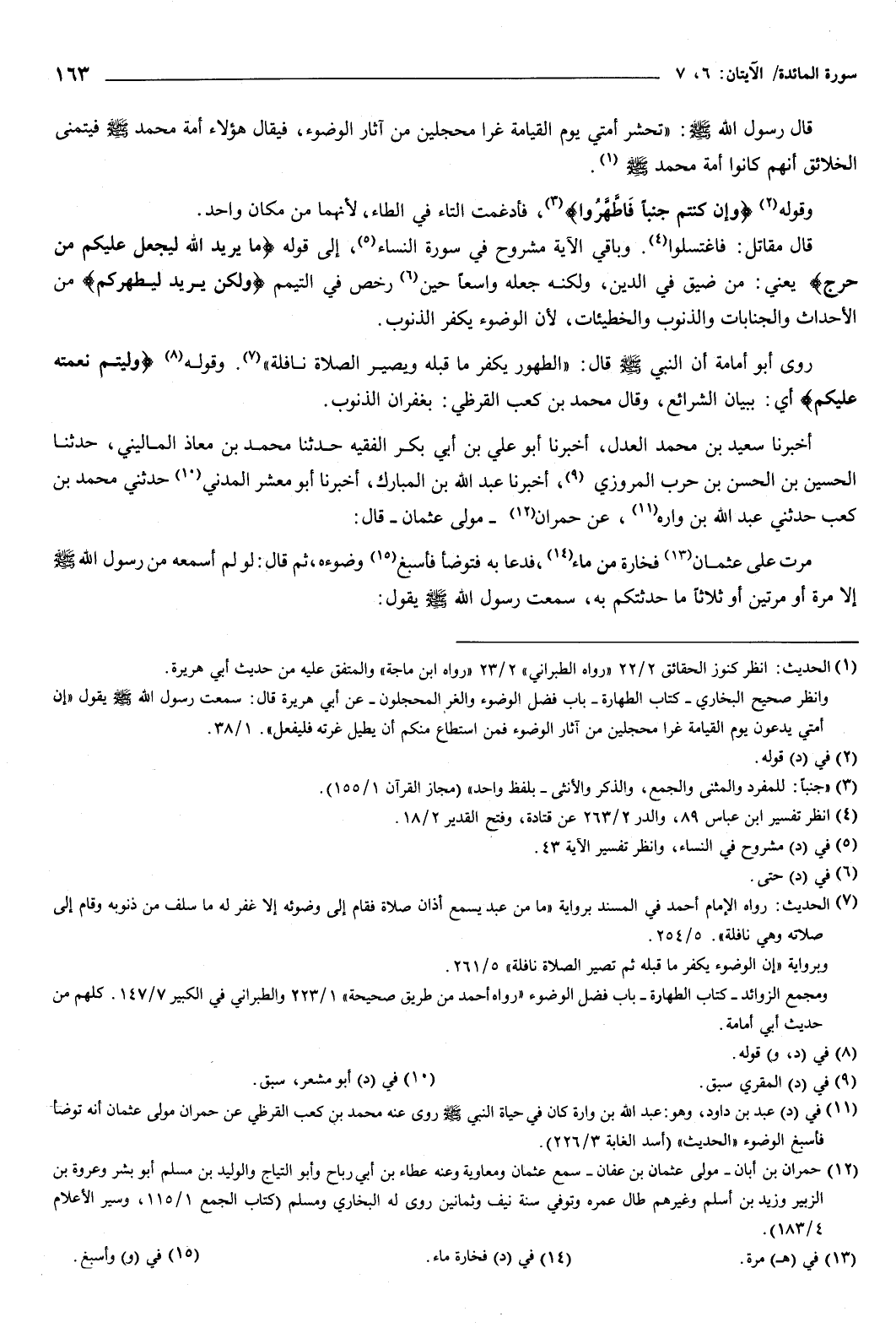 276 - أَخْبَرَنَا سَعِيدُ بْنُ مُحَمَّدٍ الْعَدْلُ، أَخْبَرَنَا أَبُو عَلِيِّ بْنُ أَبِي بَكْرٍ الْفَقِيهُ، حَدَّثَنَا مُحَمَّدُ بْنُ مُعَاذٍ الْمَالِينِيُّ، حَدَّثَنَا الْحُسَيْنُ بْنُ الْحَسَنِ بْنِ حَرْبٍ الْمَرْوَزِيُّ، أَخْبَرَنَا عَبْدُ اللَّهِ بْنُ الْمُبَارَكِ، أَخْبَرَنَا أَبُو مَعْشَرٍ الْمَدَنِيُّ، حَدَّثَنِي مُحَمَّدُ بْنُ كَعْبٍ، حَدَّثَنِي عَبْدُ اللَّهِ بْنُ وَارَهْ، عَنْ حُمْرَانَ مَوْلَى عُثْمَانَ، قَالَ: مَرَّتْ عَلَى عُثْمَانَ فَخَّارَةٍ مِنْ مَاءٍ، فَدَعَا بِهِ فَتَوَضَّأَ فَأَسْبَغَ وُضُوءَهُ، ثُمَّ قَالَ: لَوْ لَمْ أَسْمَعْهُ مِنْ رَسُولِ اللَّهِ صَلَّى اللهُ عَلَيْهِ وَسَلَّمَ إِلَّا مَرَّةً أَوْ مَرَّتَيْنِ أَوْ ثَلاثًا مَا حَدَّثْتُكُمْ بِهِ، سَمِعْتُ رَسُولَ اللَّهِ صَلَّى اللهُ عَلَيْهِ وَسَلَّمَ، يَقُولُ: «