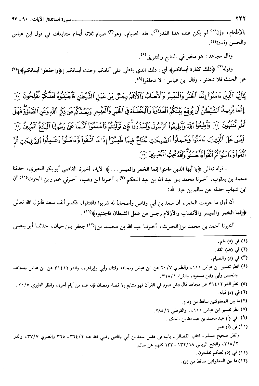 {يَأَيُّهَا الَّذِينَ آمَنُوا إِنَّمَا الْخَمْرُ وَالْمَيْسِرُ وَالأَنْصَابُ وَالأَزْلامُ رِجْسٌ مِنْ عَمَلِ الشَّيْطَانِ فَاجْتَنِبُوهُ لَعَلَّكُمْ تُفْلِحُونَ {90} إِنَّمَا يُرِيدُ الشَّيْطَانُ أَنْ يُوقِعَ بَيْنَكُمُ الْعَدَاوَةَ وَالْبَغْضَاءَ فِي الْخَمْرِ وَالْمَيْسِرِ وَيَصُدَّكُمْ عَنْ ذِكْرِ اللَّهِ وَعَنِ الصَّلاةِ فَهَلْ أَنْتُمْ مُنْتَهُونَ {91} وَأَطِيعُوا اللَّهَ وَأَطِيعُوا الرَّسُولَ وَاحْذَرُوا فَإِنْ تَوَلَّيْتُمْ فَاعْلَمُوا أَنَّمَا عَلَى رَسُولِنَا الْبَلاغُ الْمُبِينُ {92} لَيْسَ عَلَى الَّذِينَ آمَنُوا وَعَمِلُوا الصَّالِحَاتِ جُنَاحٌ فِيمَا طَعِمُوا إِذَا مَا اتَّقَوْا وَآمَنُوا وَعَمِلُوا الصَّالِحَاتِ ثُمَّ اتَّقَوْا وَآمَنُوا ثُمَّ اتَّقَوْا وَأَحْسَنُوا وَاللَّهُ يُحِبُّ الْمُحْسِنِينَ {93} } [المائدة: 90-93] قوله تعالى: {يَأَيُّهَا الَّذِينَ آمَنُوا إِنَّمَا الْخَمْرُ وَالْمَيْسِرُ} [المائدة: 90] الآية: