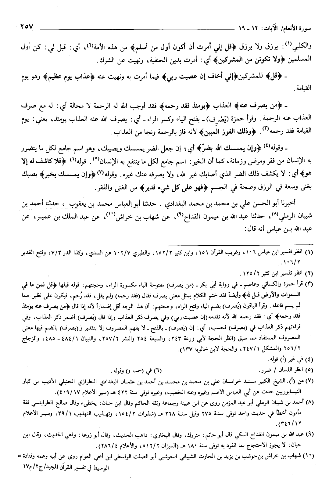 والكلبي: يَرزق ولا يُرزق، {قُلْ إِنِّي أُمِرْتُ أَنْ أَكُونَ أَوَّلَ مَنْ أَسْلَمَ} [الأنعام: 14] من هذه الأمة، أي: قيل لي: كن أول المسلمين، {وَلا تَكُونَنَّ مِنَ الْمُشْرِكِينَ} [الأنعام: 14] أي: أمرت بدين الحنفية، ونهيت عن الشرك.