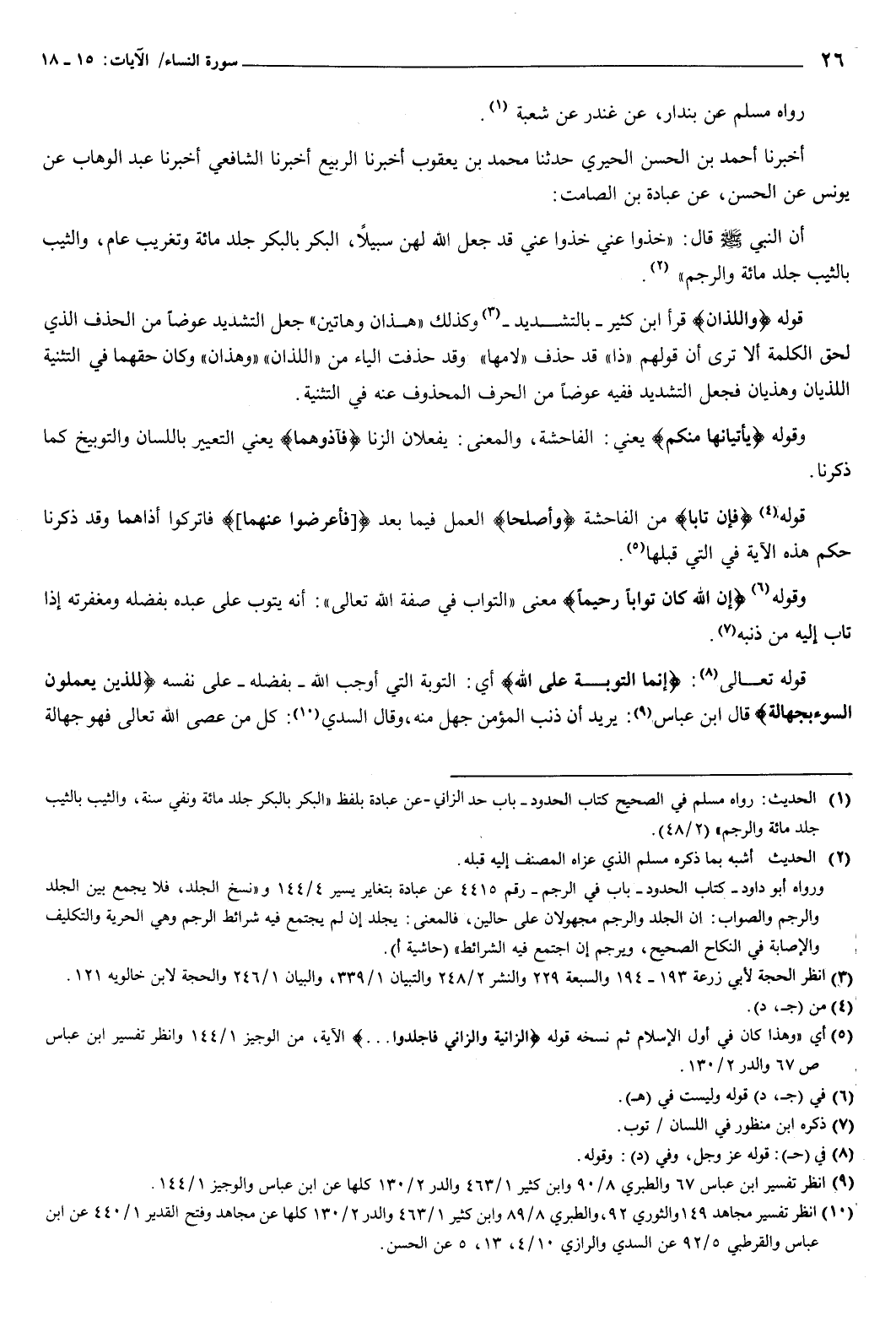 قوله تَعَالَى: {إِنَّمَا التَّوْبَةُ عَلَى اللَّهِ} [النساء: 17] أَيّ: التوبة التي أوجب اللَّه بفضله عَلَى نفسه {لِلَّذِينَ يَعْمَلُونَ السُّوءَ بِجَهَالَةٍ} [النساء: 17] قَالَ ابْن عَبَّاس: يريد أن ذنب الْمُؤْمِن جهل منه.