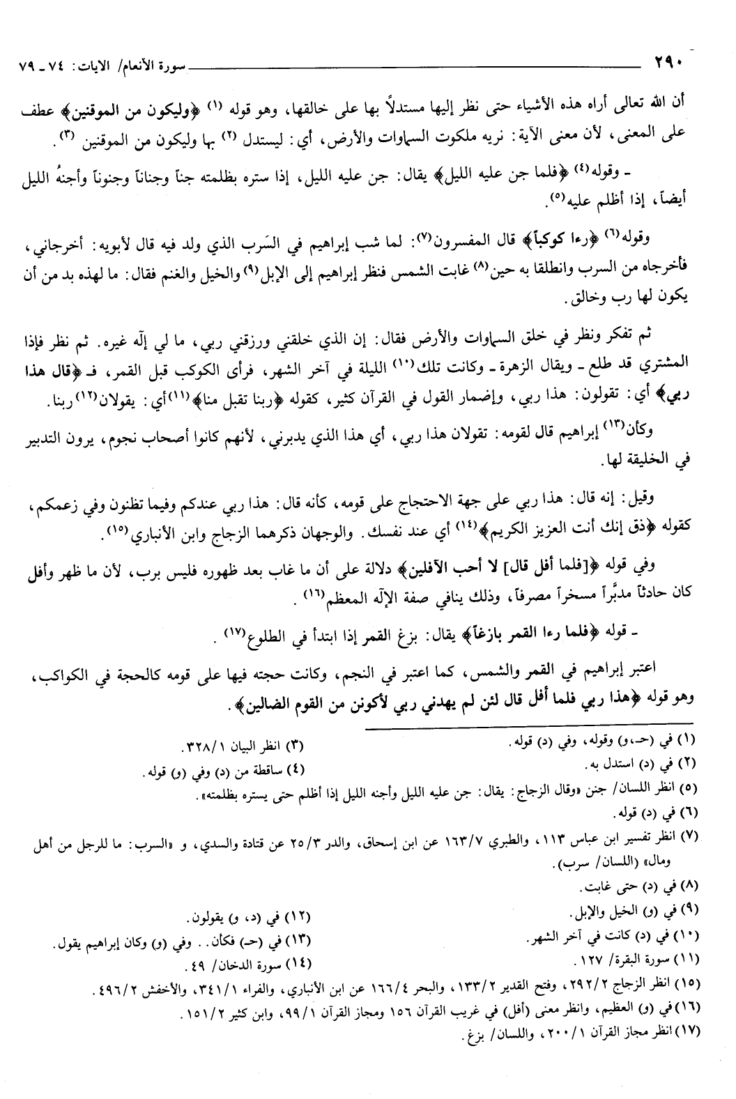اعتبر إبراهيم في القمر والشمس، كما اعتبر في النجم، وكانت حجته فيها على قومه كالحجة على الكواكب، وهو قوله: {هَذَا رَبِّي فَلَمَّا أَفَلَ قَالَ لَئِنْ لَمْ يَهْدِنِي رَبِّي لأَكُونَنَّ مِنَ الْقَوْمِ الضَّالِّينَ} [الأنعام: 77] .