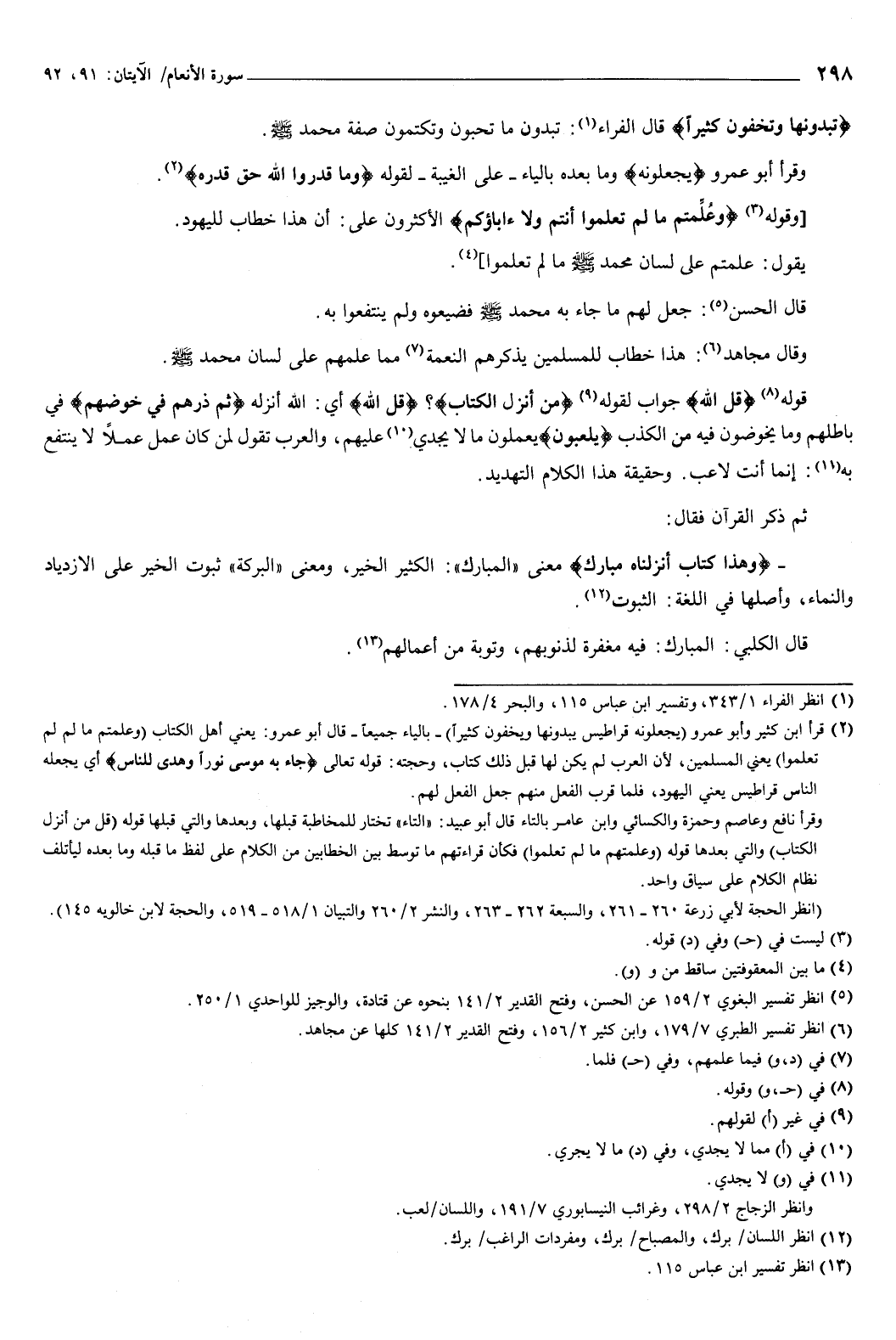 تُبْدُونَهَا وَتُخْفُونَ كَثِيرًا} [الأنعام: 91] قال الفراء: تبدون ما تحبون وتكتمون صفة محمد صَلَّى اللهُ عَلَيْهِ وَسَلَّمَ.