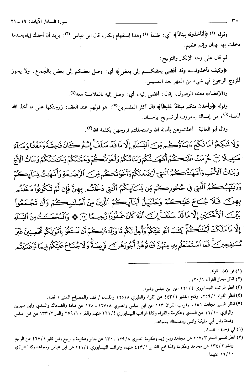 {وَلا تَنْكِحُوا مَا نَكَحَ آبَاؤُكُمْ مِنَ النِّسَاءِ إِلا مَا قَدْ سَلَفَ إِنَّهُ كَانَ فَاحِشَةً وَمَقْتًا وَسَاءَ سَبِيلا {22} حُرِّمَتْ عَلَيْكُمْ أُمَّهَاتُكُمْ وَبَنَاتُكُمْ وَأَخَوَاتُكُمْ وَعَمَّاتُكُمْ وَخَالاتُكُمْ وَبَنَاتُ الأَخِ وَبَنَاتُ الأُخْتِ وَأُمَّهَاتُكُمُ اللَّاتِي أَرْضَعْنَكُمْ وَأَخَوَاتُكُمْ مِنَ الرَّضَاعَةِ وَأُمَّهَاتُ نِسَائِكُمْ وَرَبَائِبُكُمُ اللَّاتِي فِي حُجُورِكُمْ مِنْ نِسَائِكُمُ اللَّاتِي دَخَلْتُمْ بِهِنَّ فَإِنْ لَمْ تَكُونُوا دَخَلْتُمْ بِهِنَّ فَلا جُنَاحَ عَلَيْكُمْ وَحَلائِلُ أَبْنَائِكُمُ الَّذِينَ مِنْ أَصْلابِكُمْ وَأَنْ تَجْمَعُوا بَيْنَ الأُخْتَيْنِ إِلا مَا قَدْ سَلَفَ إِنَّ اللَّهَ كَانَ غَفُورًا رَحِيمًا {23} وَالْمُحْصَنَاتُ مِنَ النِّسَاءِ إِلا مَا مَلَكَتْ أَيْمَانُكُمْ كِتَابَ اللَّهِ عَلَيْكُمْ وَأُحِلَّ لَكُمْ مَا وَرَاءَ ذَلِكُمْ أَنْ تَبْتَغُوا بِأَمْوَالِكُمْ مُحْصِنِينَ غَيْرَ مُسَافِحِينَ فَمَا اسْتَمْتَعْتُمْ بِهِ مِنْهُنَّ فَآتُوهُنَّ أُجُورَهُنَّ فَرِيضَةً وَلا جُنَاحَ عَلَيْكُمْ فِيمَا تَرَاضَيْتُمْ