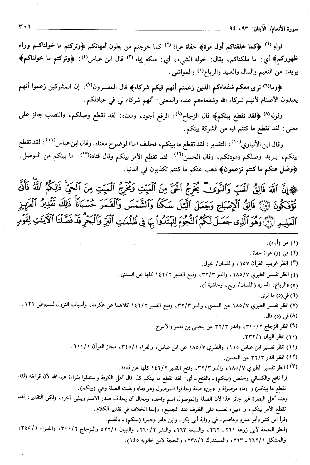{إِنَّ اللَّهَ فَالِقُ الْحَبِّ وَالنَّوَى يُخْرِجُ الْحَيَّ مِنَ الْمَيِّتِ وَمُخْرِجُ الْمَيِّتِ مِنَ الْحَيِّ ذَلِكُمُ اللَّهُ فَأَنَّى تُؤْفَكُونَ {95} فَالِقُ الإِصْبَاحِ وَجَعَلَ اللَّيْلَ سَكَنًا وَالشَّمْسَ وَالْقَمَرَ حُسْبَانًا ذَلِكَ تَقْدِيرُ الْعَزِيزِ الْعَلِيمِ {96} وَهُوَ الَّذِي جَعَلَ لَكُمُ النُّجُومَ لِتَهْتَدُوا بِهَا فِي ظُلُمَاتِ الْبَرِّ وَالْبَحْرِ قَدْ فَصَّلْنَا الآيَاتِ لِقَوْمٍ