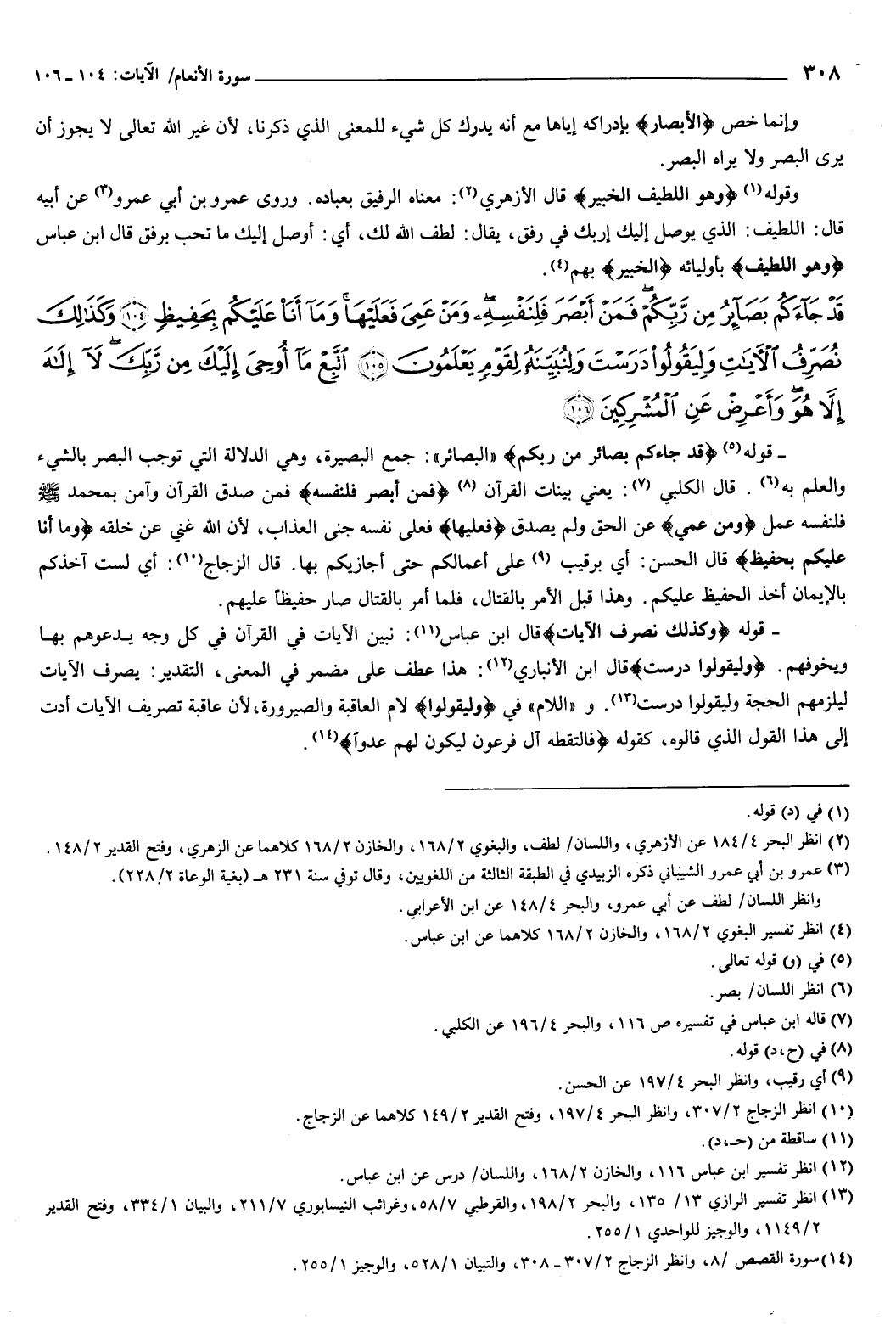 {قَدْ جَاءَكُمْ بَصَائِرُ مِنْ رَبِّكُمْ فَمَنْ أَبْصَرَ فَلِنَفْسِهِ وَمَنْ عَمِيَ فَعَلَيْهَا وَمَا أَنَا عَلَيْكُمْ بِحَفِيظٍ {104} وَكَذَلِكَ نُصَرِّفُ الآيَاتِ وَلِيَقُولُوا دَرَسْتَ وَلِنُبَيِّنَهُ لِقَوْمٍ يَعْلَمُونَ {105} اتَّبِعْ مَا أُوحِيَ إِلَيْكَ مِنْ رَبِّكَ لا إِلَهَ إِلا هُوَ وَأَعْرِضْ عَنِ الْمُشْرِكِينَ {106} } [الأنعام: 104-106] قوله: {قَدْ جَاءَكُمْ بَصَائِرُ مِنْ رَبِّكُمْ} [الأنعام: 104] البصائر: جمع البصيرة، وهي الدلالة التي توجب البصر بالشيء والعلم به.