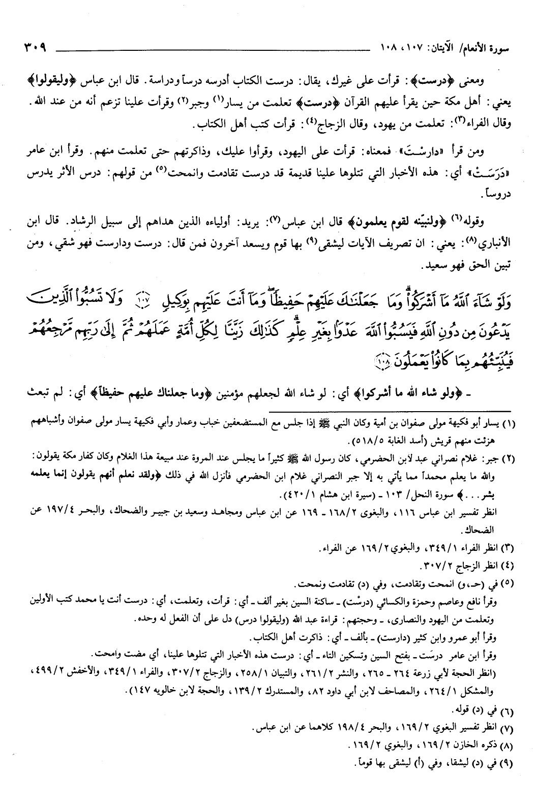 {وَلَوْ شَاءَ اللَّهُ مَا أَشْرَكُوا وَمَا جَعَلْنَاكَ عَلَيْهِمْ حَفِيظًا وَمَا أَنْتَ عَلَيْهِمْ بِوَكِيلٍ {107} وَلا تَسُبُّوا الَّذِينَ يَدْعُونَ مِنْ دُونِ اللَّهِ فَيَسُبُّوا اللَّهَ عَدْوًا بِغَيْرِ عِلْمٍ كَذَلِكَ زَيَّنَّا لِكُلِّ أُمَّةٍ عَمَلَهُمْ ثُمَّ إِلَى رَبِّهِمْ مَرْجِعُهُمْ فَيُنَبِّئُهُمْ بِمَا كَانُوا يَعْمَلُونَ {108} } [الأنعام: 107-108] {وَلَوْ شَاءَ اللَّهُ مَا أَشْرَكُوا} [الأنعام: 107] أي: لو شاء الله لجعلهم مؤمنين، {وَمَا جَعَلْنَاكَ عَلَيْهِمْ حَفِيظًا} [الأنعام: 107] أي: لم تبعث