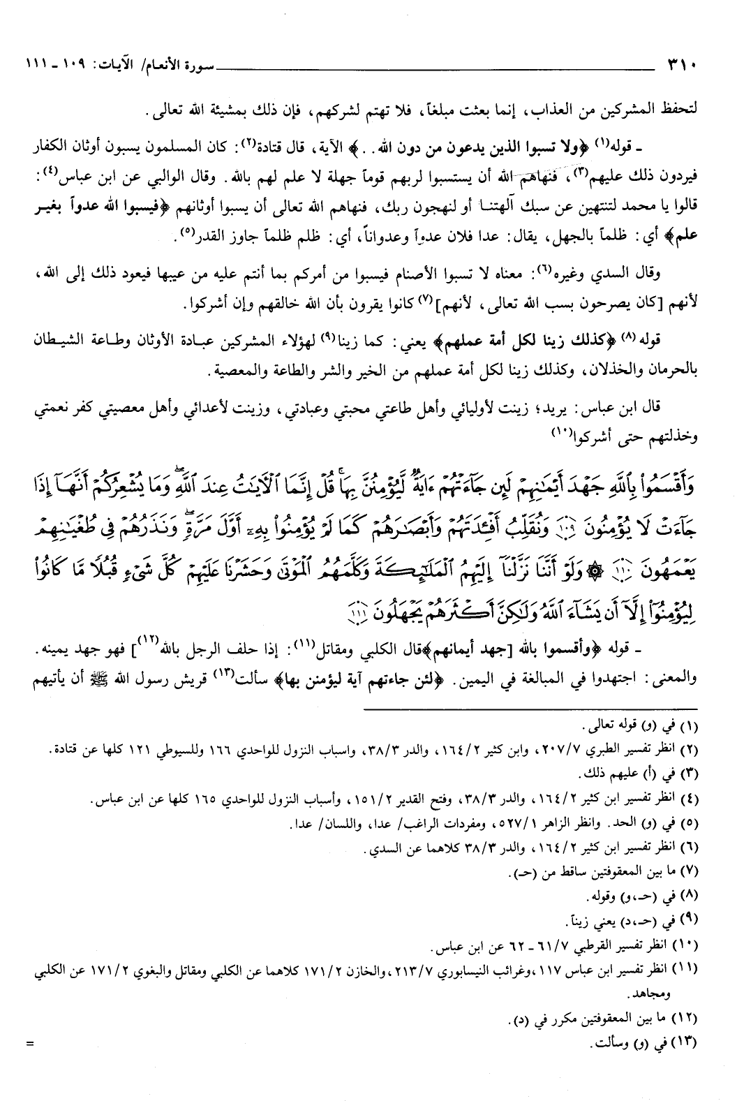 قوله: {وَلا تَسُبُّوا الَّذِينَ يَدْعُونَ مِنْ دُونِ اللَّهِ} [الأنعام: 108] الآية: قال قتادة: كان المسلمون يسبون أوثان الكفار فيردون ذلك عليهم، فنهاهم الله أن يستسبوا لربهم قوما جهلة لا علم لهم بالله.