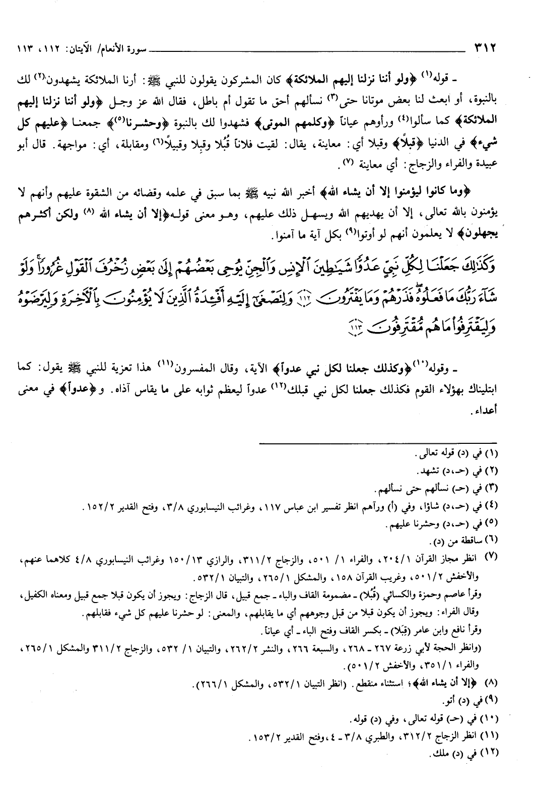 {وَكَذَلِكَ جَعَلْنَا لِكُلِّ نَبِيٍّ عَدُوًّا شَيَاطِينَ الإِنْسِ وَالْجِنِّ يُوحِي بَعْضُهُمْ إِلَى بَعْضٍ زُخْرُفَ الْقَوْلِ غُرُورًا وَلَوْ شَاءَ رَبُّكَ مَا فَعَلُوهُ فَذَرْهُمْ وَمَا يَفْتَرُونَ {112} وَلِتَصْغَى إِلَيْهِ أَفْئِدَةُ الَّذِينَ لا يُؤْمِنُونَ بِالآخِرَةِ وَلِيَرْضَوْهُ وَلِيَقْتَرِفُوا مَا هُمْ مُقْتَرِفُونَ {113} } [الأنعام: 112-113] وقوله: {وَكَذَلِكَ جَعَلْنَا لِكُلِّ نَبِيٍّ عَدُوًّا} [الأنعام: 112] الآية: قال المفسرون: هذا تعزية للنبي صَلَّى اللهُ عَلَيْهِ وَسَلَّمَ يقول: كما ابتليناك بهؤلاء القوم فكذلك جعلنا لكل نبي قبلك عدوا ليعظم ثوابه على ما يقاسي أذاه.