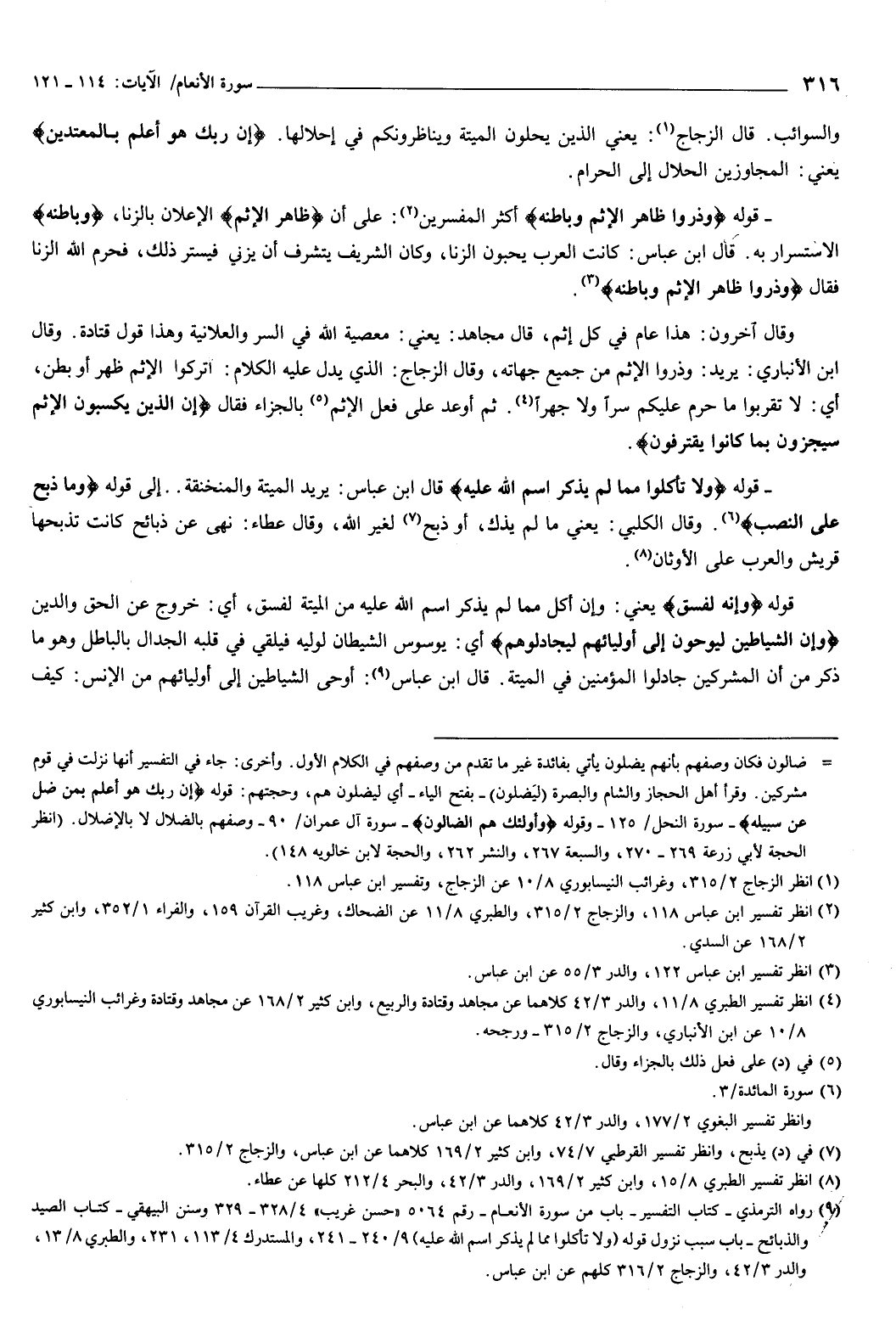 قوله: {وَلا تَأْكُلُوا مِمَّا لَمْ يُذْكَرِ اسْمُ اللَّهِ عَلَيْهِ} [الأنعام: 121] قال ابن عباس: يريد: الميتة والمنخنقة.