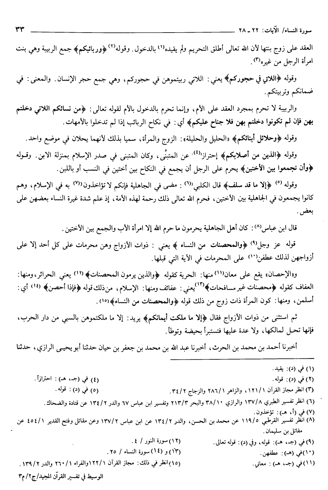 وقوله: {الَّذِينَ مِنْ أَصْلابِكُمْ} [النساء: 23] إحتراز عَنْ المُتبنَّى، وكان المبتنى فِي صدر الْإِسْلَام بمنزلة الابن، وقوله: {وَأَنْ تَجْمَعُوا بَيْنَ الأُخْتَيْنِ} [النساء: 23] يحرم عَلَى الرَّجُل أن يجمع فِي النكاح بين أختين فِي النسب أَوْ باللبن.