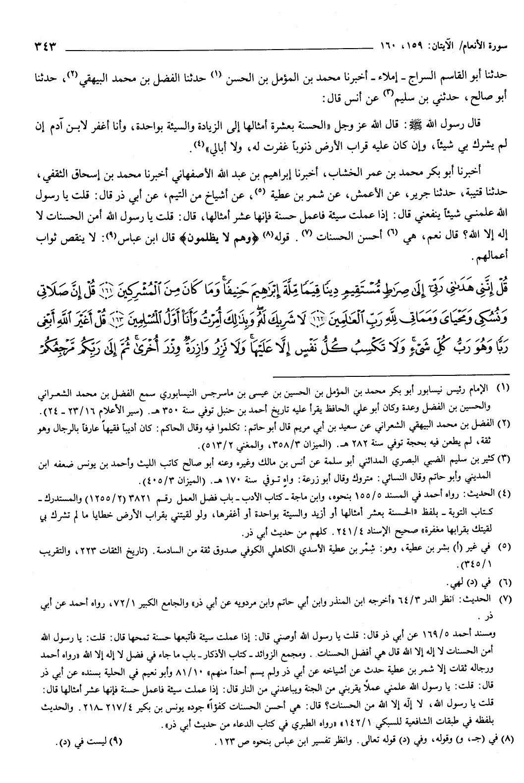 قوله: {وَهُمْ لا يُظْلَمُونَ} [الأنعام: 160] قال ابن عباس: لا ينقص ثواب أعمالهم.
