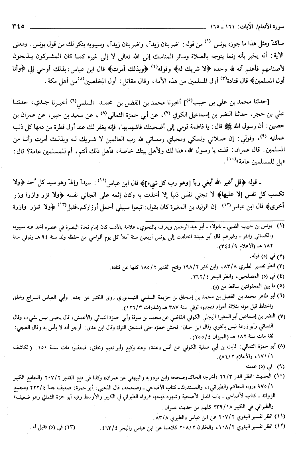 {وَأَنَا أَوَّلُ الْمُسْلِمِينَ} [الأنعام: 163] قال قتادة: أول المسلمين من هذه الأمة.
