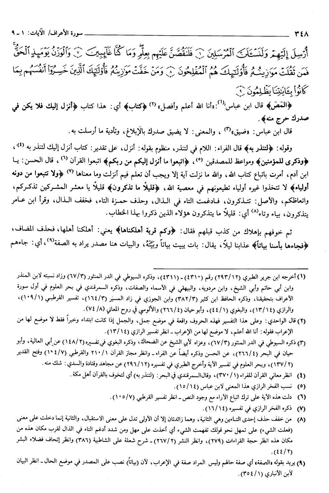 أُرْسِلَ إِلَيْهِمْ وَلَنَسْأَلَنَّ الْمُرْسَلِينَ {6} فَلَنَقُصَّنَّ عَلَيْهِمْ بِعِلْمٍ وَمَا كُنَّا غَائِبِينَ {7} وَالْوَزْنُ يَوْمَئِذٍ الْحَقُّ فَمَنْ ثَقُلَتْ مَوَازِينُهُ فَأُولَئِكَ هُمُ الْمُفْلِحُونَ {8} وَمَنْ خَفَّتْ مَوَازِينُهُ فَأُولَئِكَ الَّذِينَ خَسِرُوا أَنْفُسَهُمْ بِمَا كَانُوا بِآيَاتِنَا يَظْلِمُونَ {9} } [الأعراف: 1-9] المص: قال ابن عباس: «أنا الله أعلم وأفصل» .