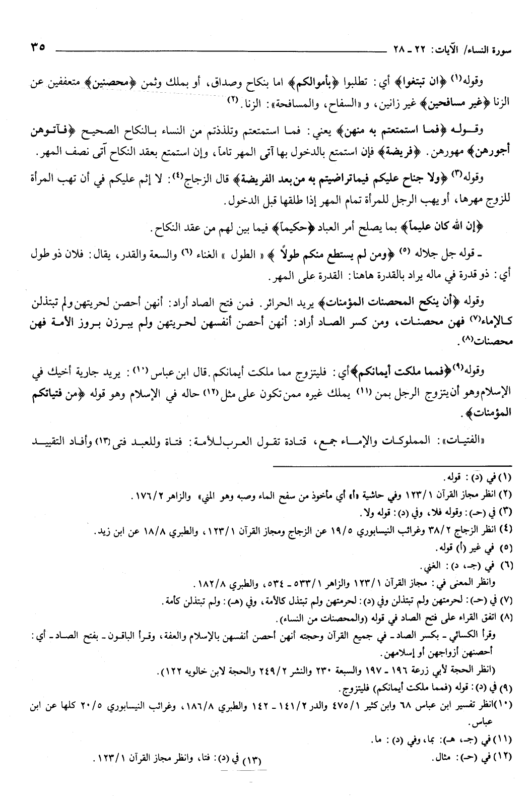 وقوله: {أَنْ يَنْكِحَ الْمُحْصَنَاتِ الْمُؤْمِنَاتِ} [النساء: 25] يريد الحرائر، فَمَنْ فتَح الصاد أراد: أنهن أحصن لحريتهن وَلَم تبتذلن كالإماء فهن محصَنات، ومن كسر الصاد أراد: أنهن أحصن أنفسهن لحريتهن وَلَم يبرزن بروز الأمة فهن محصِنات.