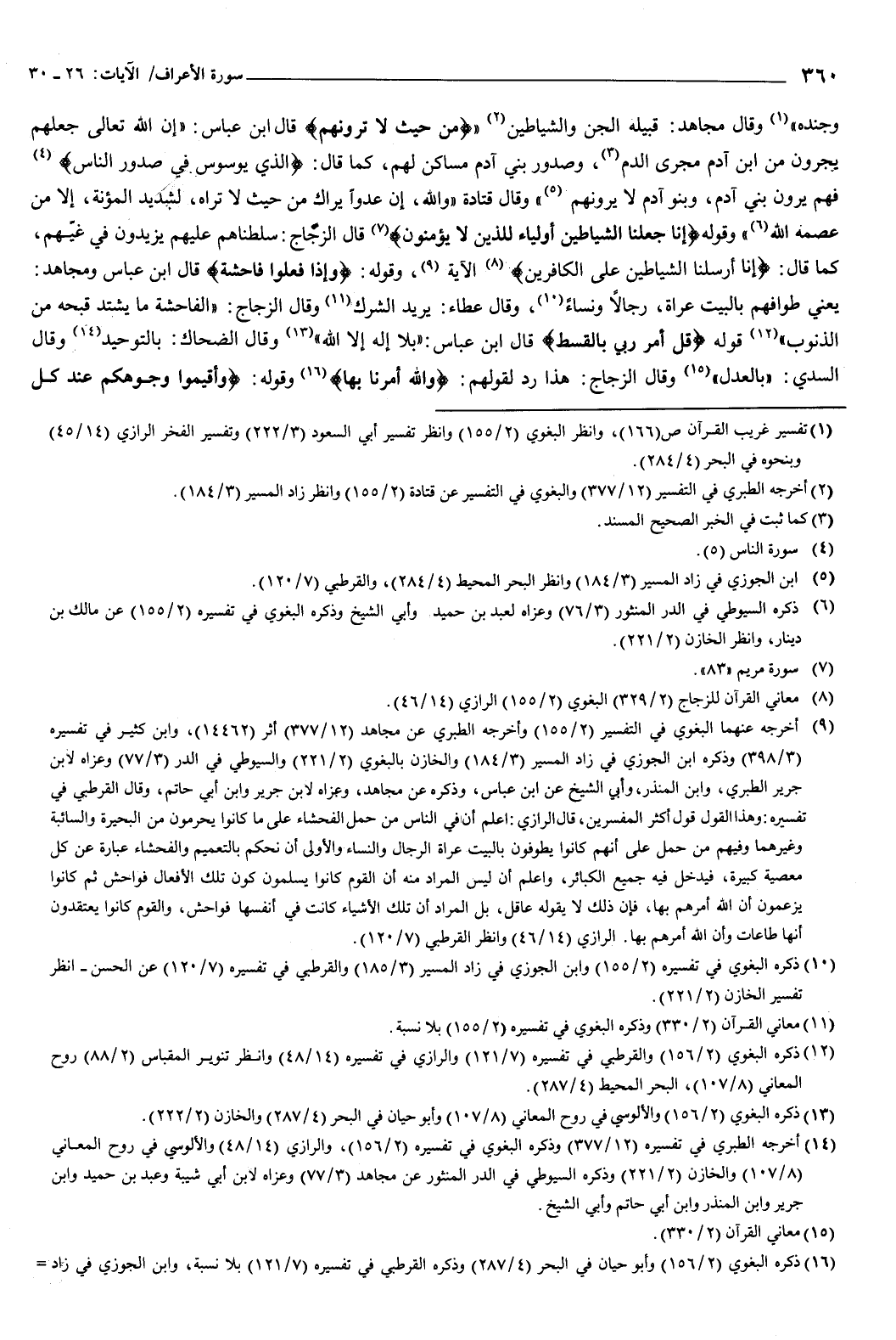 {مِنْ حَيْثُ لا تَرَوْنَهُمْ} [الأعراف: 27] قال ابن عباس: إن الله تعالى جعلهم يجرون من ابن آدم مجرى الدم، وصدور بني آدم مساكن لهم، كما قال: {الَّذِي يُوَسْوِسُ فِي صُدُورِ النَّاسِ} [الناس: 5] ، فهم يرون بني آدم، وبنو آدم لا يرونهم.