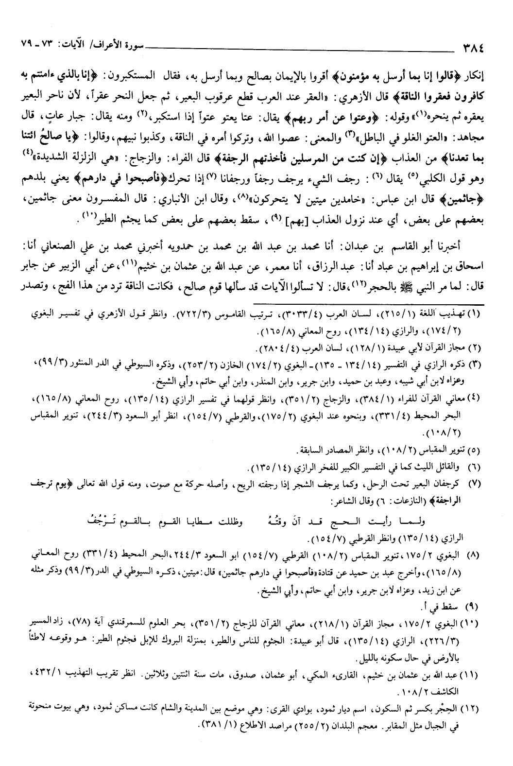 إنكار، {قَالُوا إِنَّا بِمَا أُرْسِلَ بِهِ مُؤْمِنُونَ} [الأعراف: 75] أقرُّوا بالإيمان بصالح وبما أرسل به، فقال المستكبرون: {إِنَّا بِالَّذِي آمَنْتُمْ بِهِ كَافِرُونَ {76} فَعَقَرُوا النَّاقَةَ} [الأعراف: 76-77] قال الأزهري: العقر عند العرب قطع عرقوب البعير، ثم جعل النحر عقرا، لأن ناحر البعير يعقره ثم ينحره.