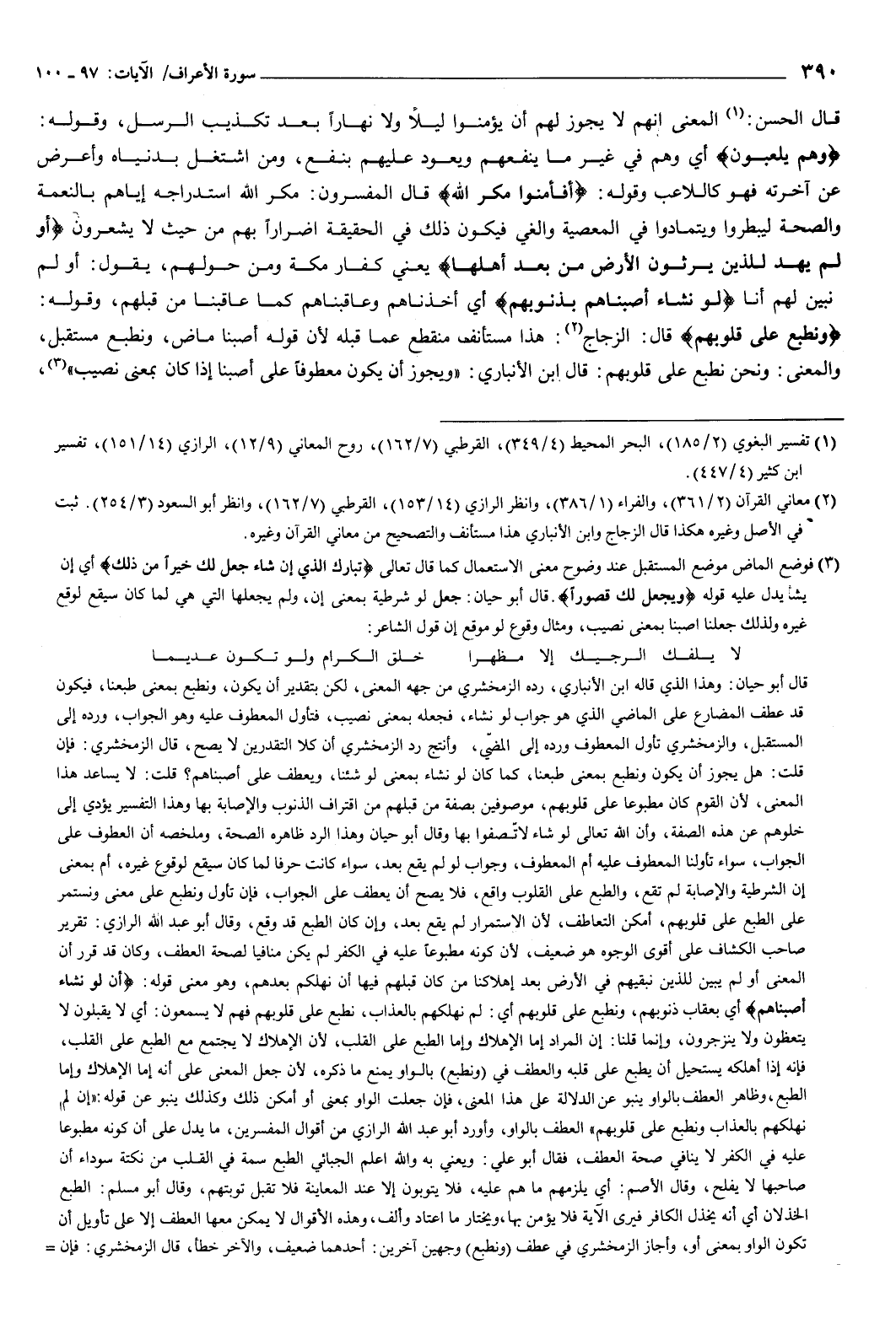 {أَوَلَمْ يَهْدِ لِلَّذِينَ يَرِثُونَ الأَرْضَ مِنْ بَعْدِ أَهْلِهَا} [الأعراف: 100] يعني: كفار مكة ومن حولهم، يقول: أو لو نبين لهم أنا {لَوْ نَشَاءُ أَصَبْنَاهُمْ بِذُنُوبِهِمْ} [الأعراف: 100] أي: أخذناهم وعاقبناهم كما عاقبنا من قبلهم، وقوله: {وَنَطْبَعُ عَلَى قُلُوبِهِمْ} [الأعراف: 100] قال الزجاج: هذا مستأنف منقطع عما قبله لأن قوله أصبنا ماض، ونطبع مستقبل، والمعنى: ونحن نطبع على قلوبهم.