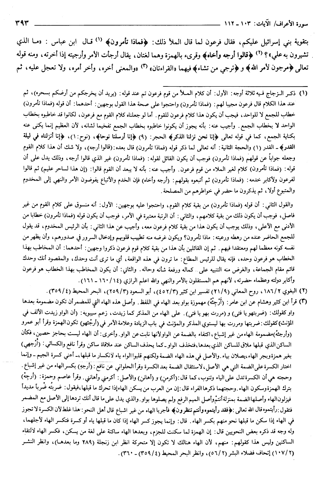 بتقوية بني إسرائيل عليكم، فقال فرعون لما قال الملأ ذلك: فماذا تأمرون: قال ابن عباس: ما الذي تشيرون به علي؟ {قَالُوا أَرْجِهْ وَأَخَاهُ} [الأعراف: 111] ، وقرئ بالهمزة، وهما لغتان، يقال: أرجأت الأمر وأرجيته.