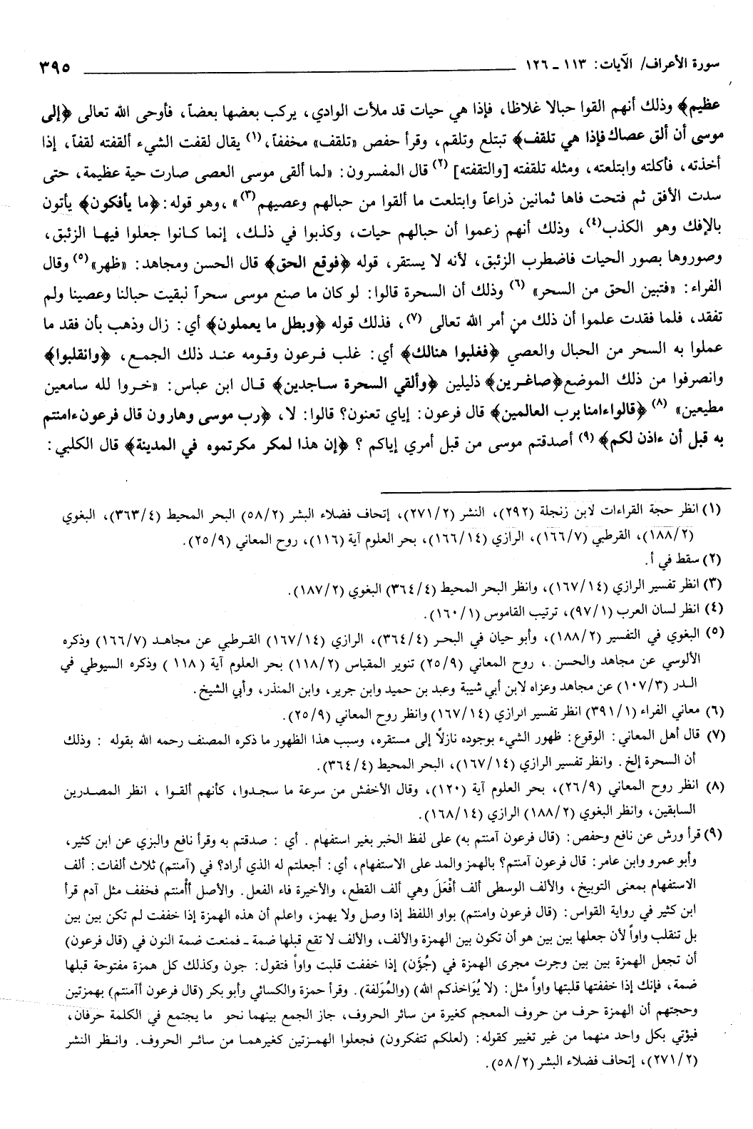 قال الزجاج: أي: ولكم مع الأجر المنزلة الرفيعة عندي، فقالت السحرة لموسى: {إِمَّا أَنْ تُلْقِيَ} [الأعراف: 115] عصاك، {وَإِمَّا أَنْ نَكُونَ نَحْنُ الْمُلْقِينَ} [الأعراف: 115] ما معنا من الحبال والعصي، قال لهم موسى: ألقوا ما أنتم ملقون، {فَلَمَّا أَلْقَوْا سَحَرُوا أَعْيُنَ النَّاسِ} [الأعراف: 116] قلبوها عن صحة إدراكها بما موهوا من تلطف الحيلة، حتى رأوا الحبال حيات، واسترهبوهم قال المبرد: أرهبوهم والسين زائدة.