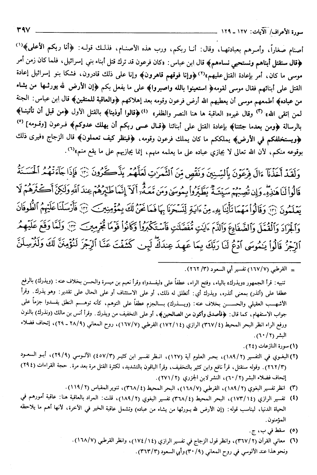 {وَلَقَدْ أَخَذْنَا آلَ فِرْعَوْنَ بِالسِّنِينَ وَنَقْصٍ مِنَ الثَّمَرَاتِ لَعَلَّهُمْ يَذَّكَّرُونَ {130} فَإِذَا جَاءَتْهُمُ الْحَسَنَةُ قَالُوا لَنَا هَذِهِ وَإِنْ تُصِبْهُمْ سَيِّئَةٌ يَطَّيَّرُوا بِمُوسَى وَمَنْ مَعَهُ أَلا إِنَّمَا طَائِرُهُمْ عِنْدَ اللَّهِ وَلَكِنَّ أَكْثَرَهُمْ لا يَعْلَمُونَ {131} وَقَالُوا مَهْمَا تَأْتِنَا بِهِ مِنْ آيَةٍ لِتَسْحَرَنَا بِهَا فَمَا نَحْنُ لَكَ بِمُؤْمِنِينَ {132} فَأَرْسَلْنَا عَلَيْهِمُ الطُّوفَانَ وَالْجَرَادَ وَالْقُمَّلَ وَالضَّفَادِعَ وَالدَّمَ آيَاتٍ مُفَصَّلاتٍ فَاسْتَكْبَرُوا وَكَانُوا قَوْمًا مُجْرِمِينَ {133} وَلَمَّا وَقَعَ عَلَيْهِمُ الرِّجْزُ قَالُوا يَا مُوسَى ادْعُ لَنَا رَبَّكَ بِمَا عَهِدَ عِنْدَكَ لَئِنْ كَشَفْتَ عَنَّا الرِّجْزَ لَنُؤْمِنَنَّ لَكَ وَلَنُرْسِلَنَّ