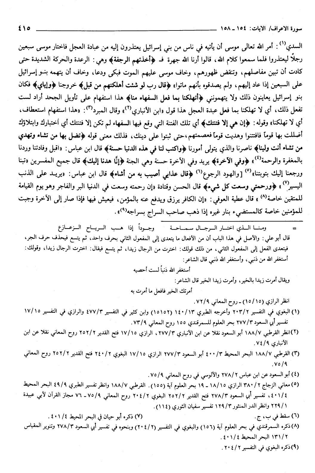 {قَالَ رَبِّ لَوْ شِئْتَ أَهْلَكْتَهُمْ مِنْ قَبْلُ} [الأعراف: 155] خروجنا، {وَإِيَّايَ} [الأعراف: 155] فكان بنو إسرائيل يعاينون ذلك ولا يتهمونني، {أَتُهْلِكُنَا بِمَا فَعَلَ السُّفَهَاءُ مِنَّا} [الأعراف: 155] هذا استفهام على تأويل الجحد أراد: لست تفعل ذلك، أي: لا تهلكنا بما فعل عبدة العجل.